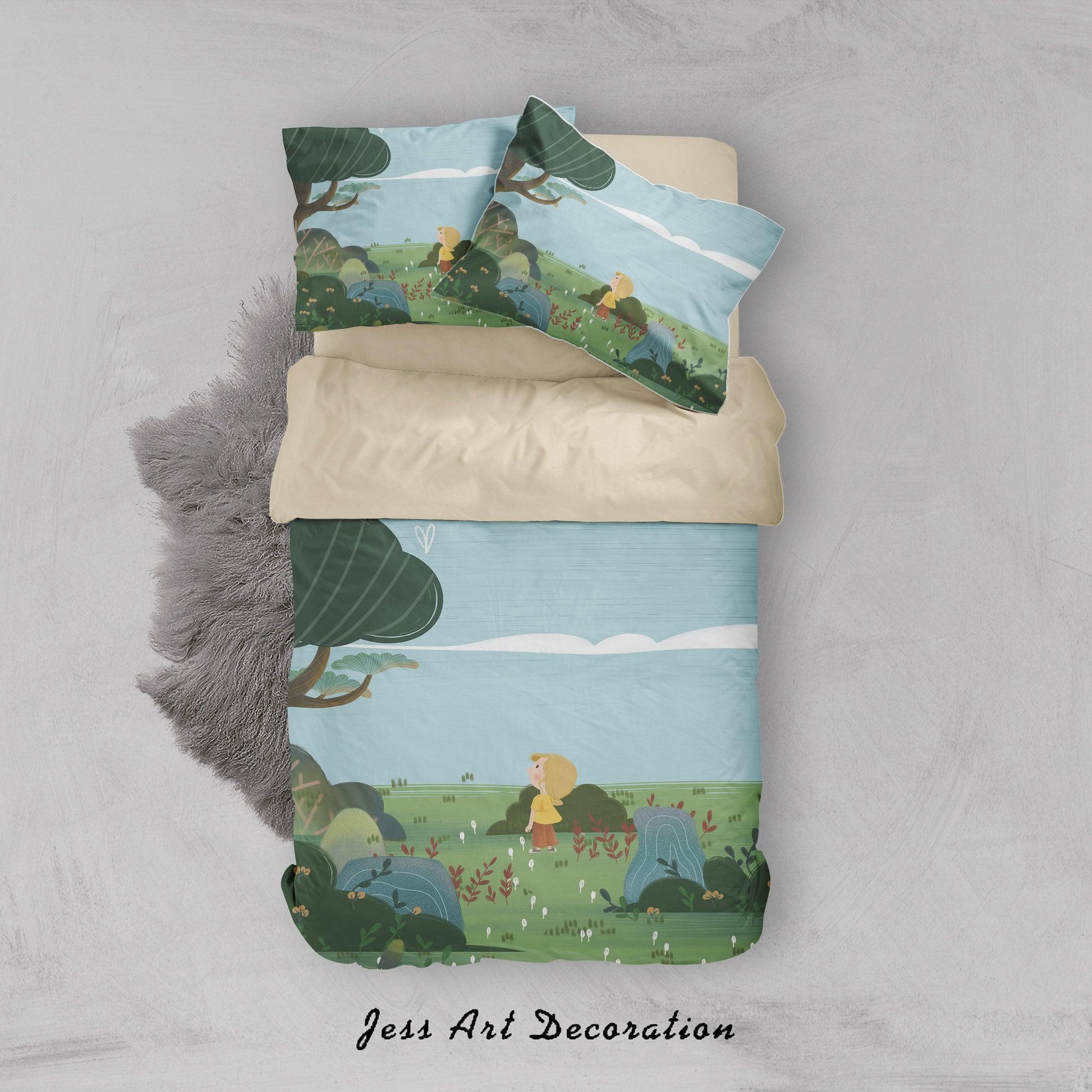 3D Blue Sky Grass Girl Tree Painting Quilt Cover Set Bedding Set Duvet Cover Pillowcases A449 LQH