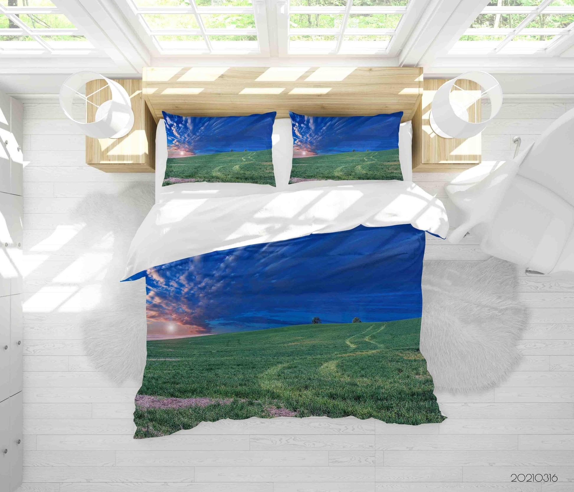 3D Blue Sky Grassland Landscape Quilt Cover Set Bedding Set Duvet Cover Pillowcases 154