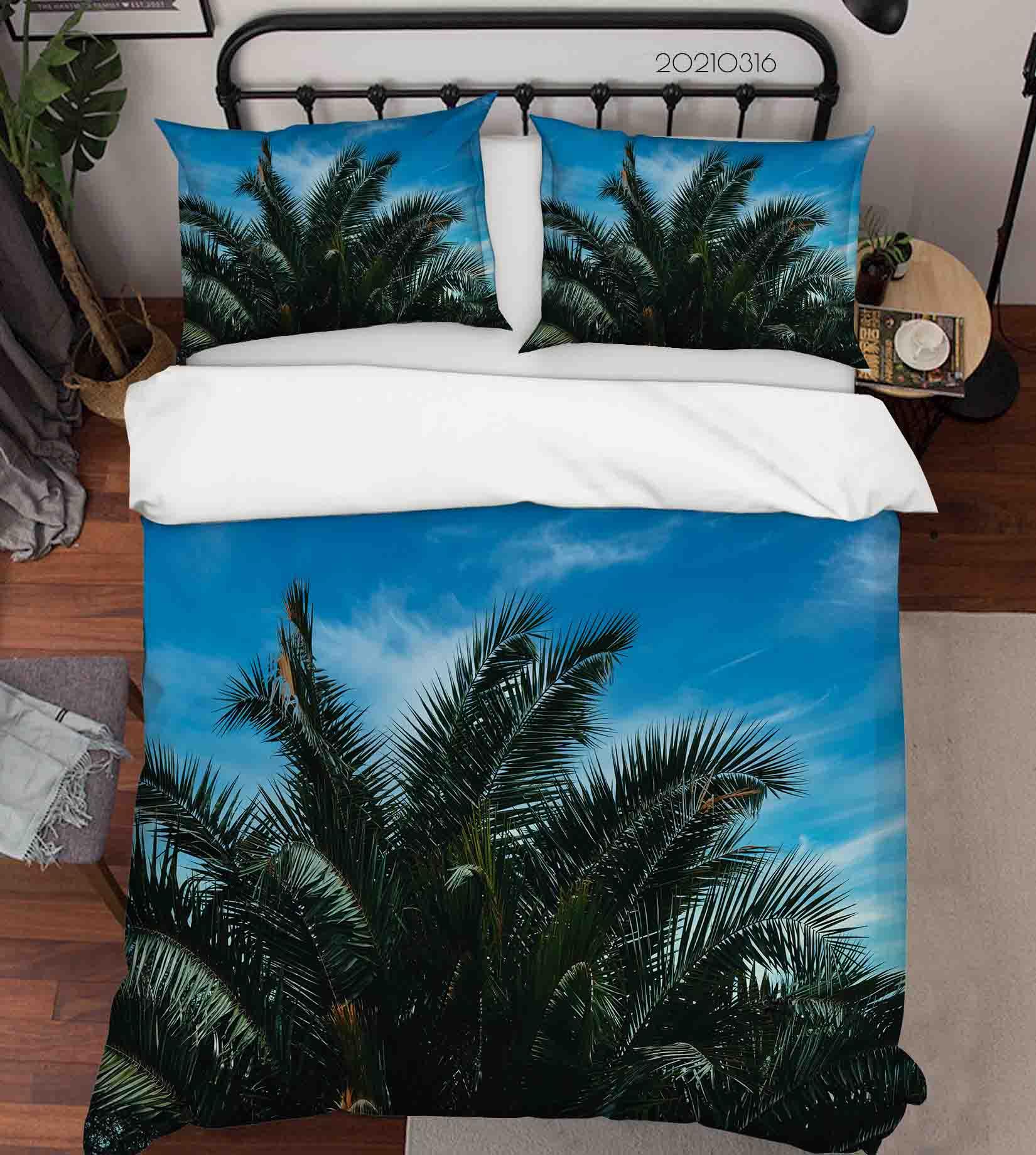 3D Blue Sky Palm Leaf Quilt Cover Set Bedding Set Duvet Cover Pillowcases 148