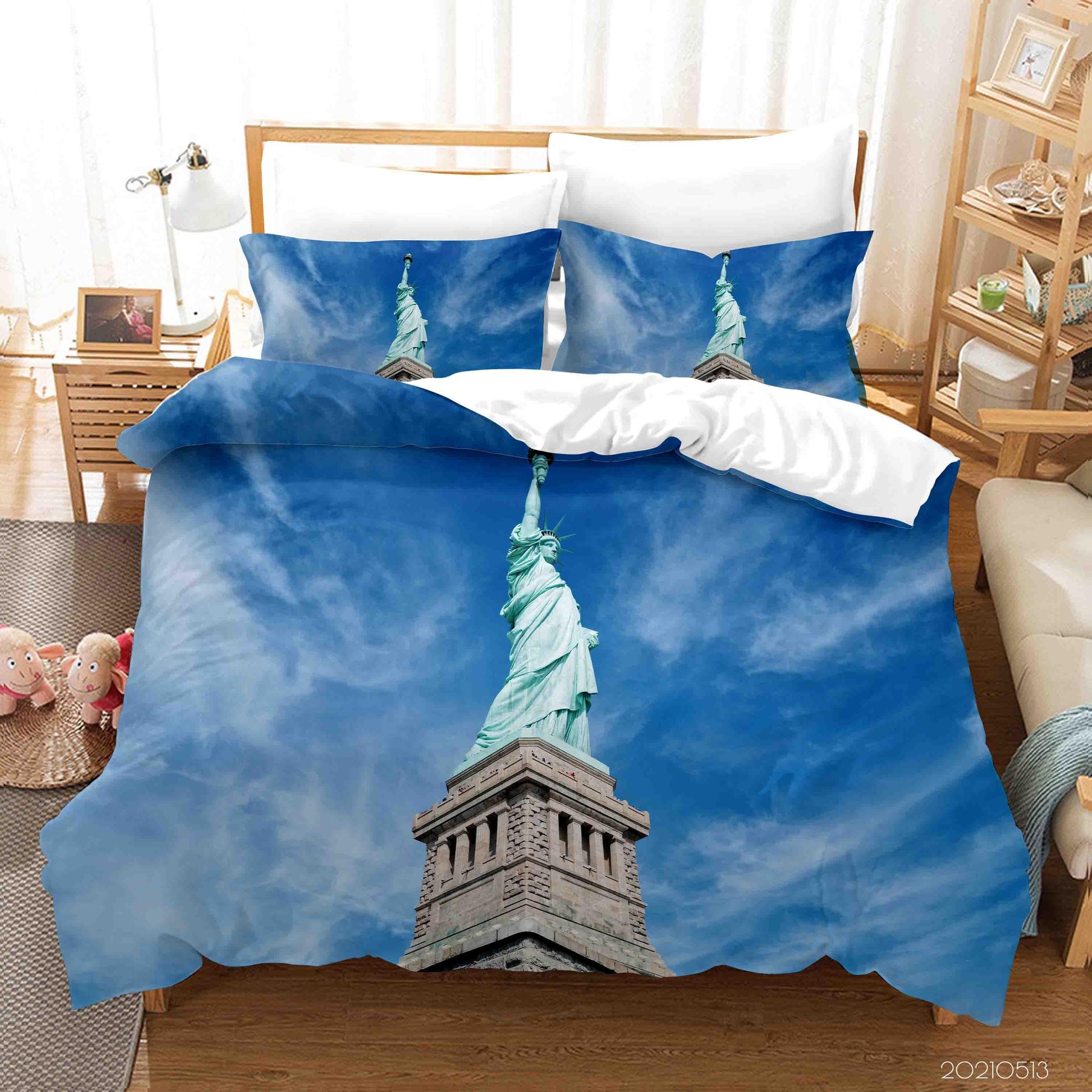 3D Blue Sky Statue of Liberty Quilt Cover Set Bedding Set Duvet Cover Pillowcases 229