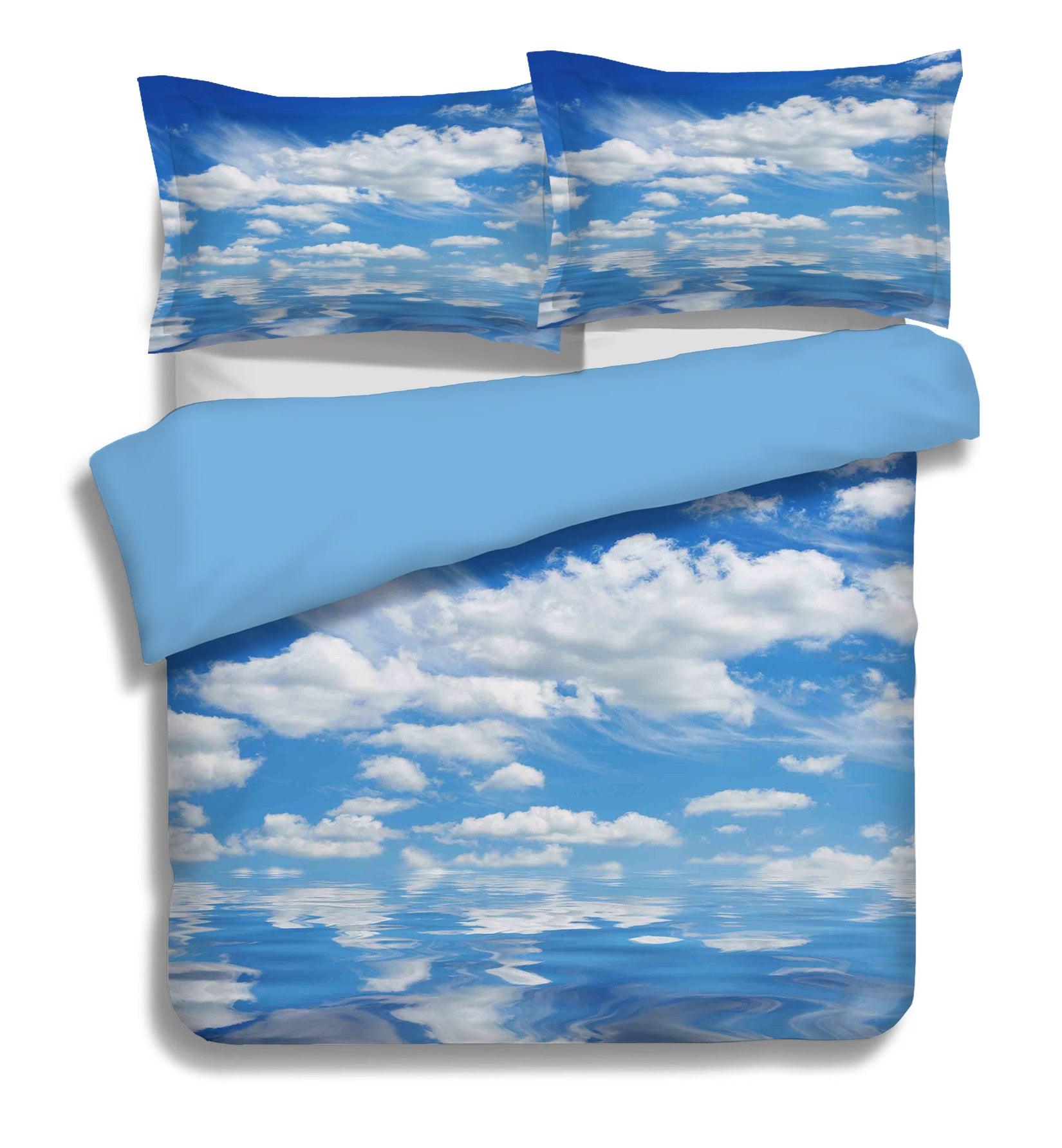 3D Blue Sky White Clouds Water Quilt Cover Set Bedding Set Pillowcases 92