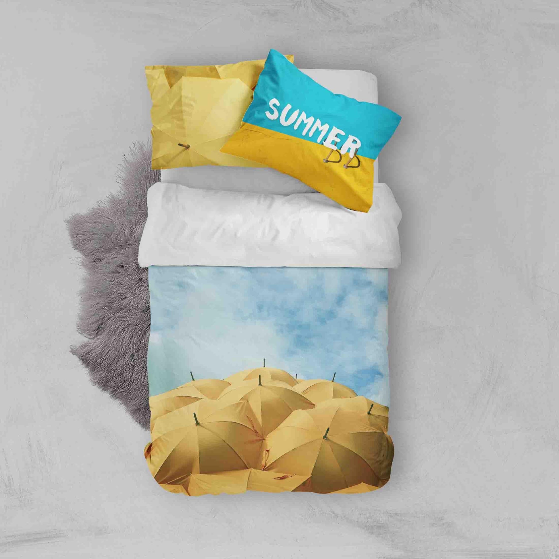 3D Blue Sky Yellow Umbrella Quilt Cover Set Bedding Set Pillowcases 108