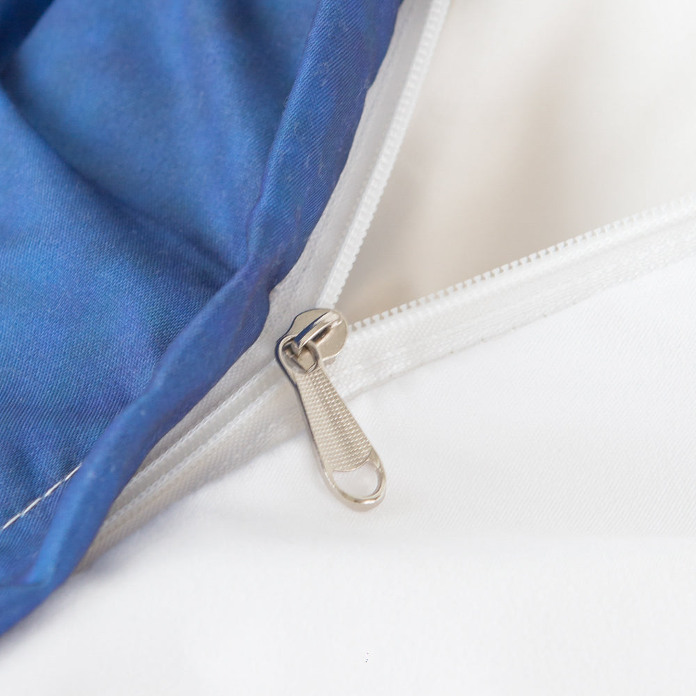 - Duvet cover with ties at the four corners to keep the comforter in place. It also gets a zipper closure.
