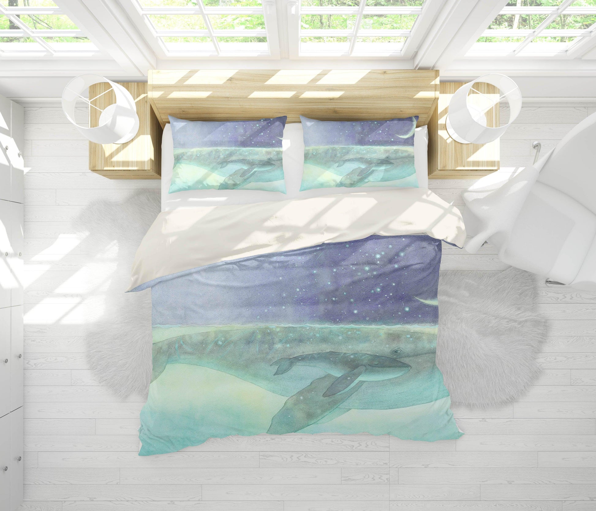 3D Blue Star Whale Quilt Cover Set Bedding Set Pillowcases 187