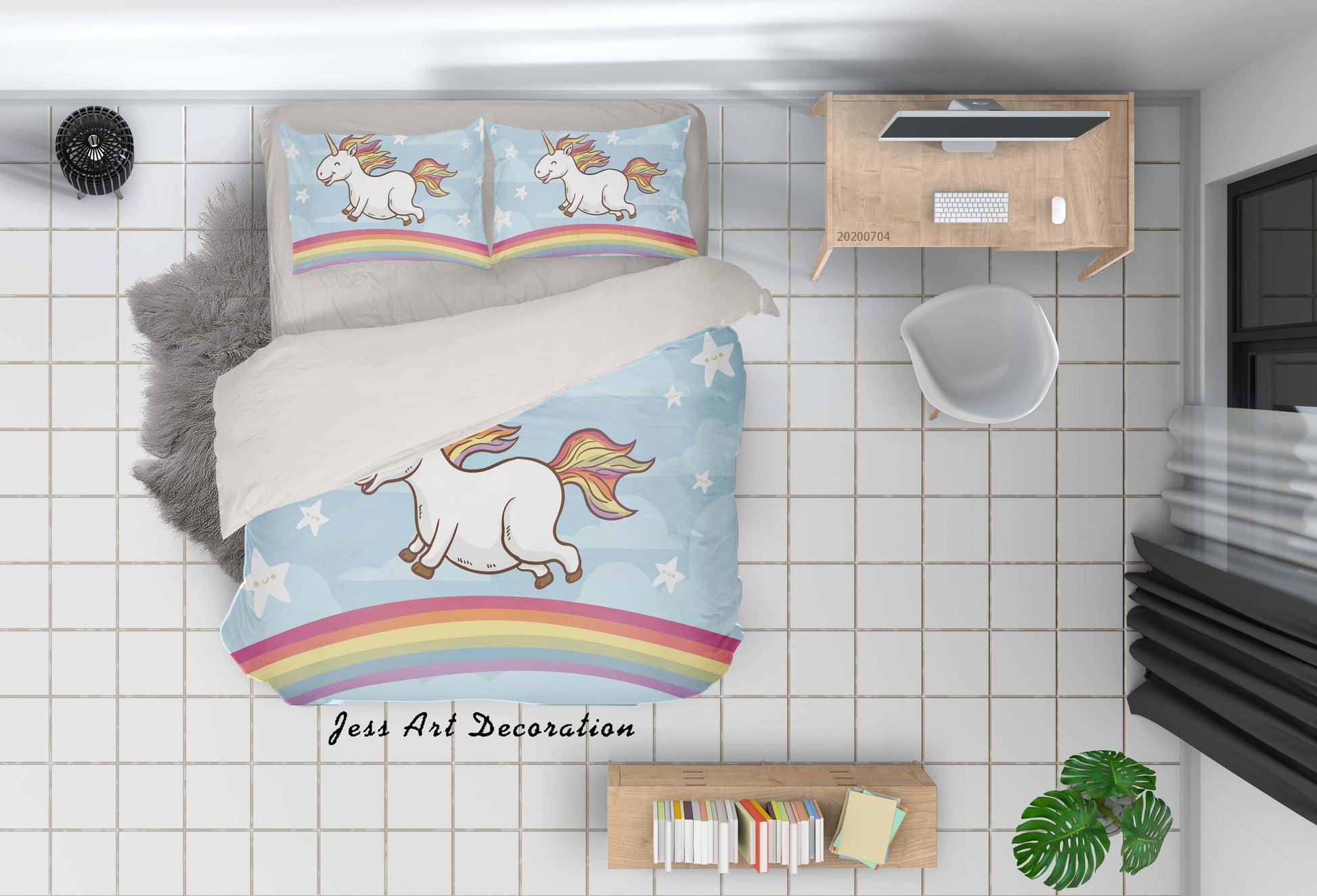 3D Blue Stars Unicorn Rainbow Quilt Cover Set Bedding Set Duvet Cover Pillowcases SF35