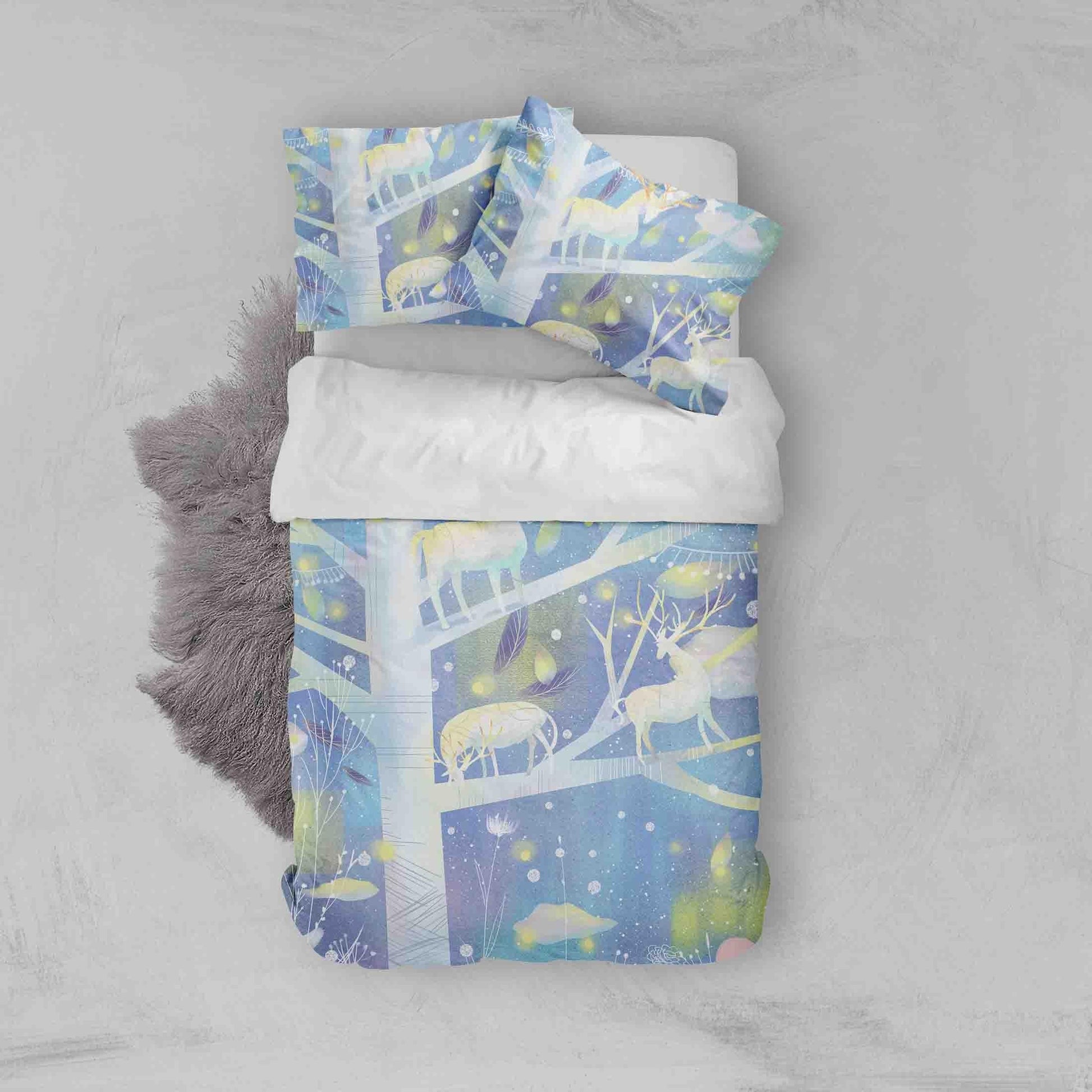 3D Blue Tree Elk Quilt Cover Set Bedding Set Pillowcases 16