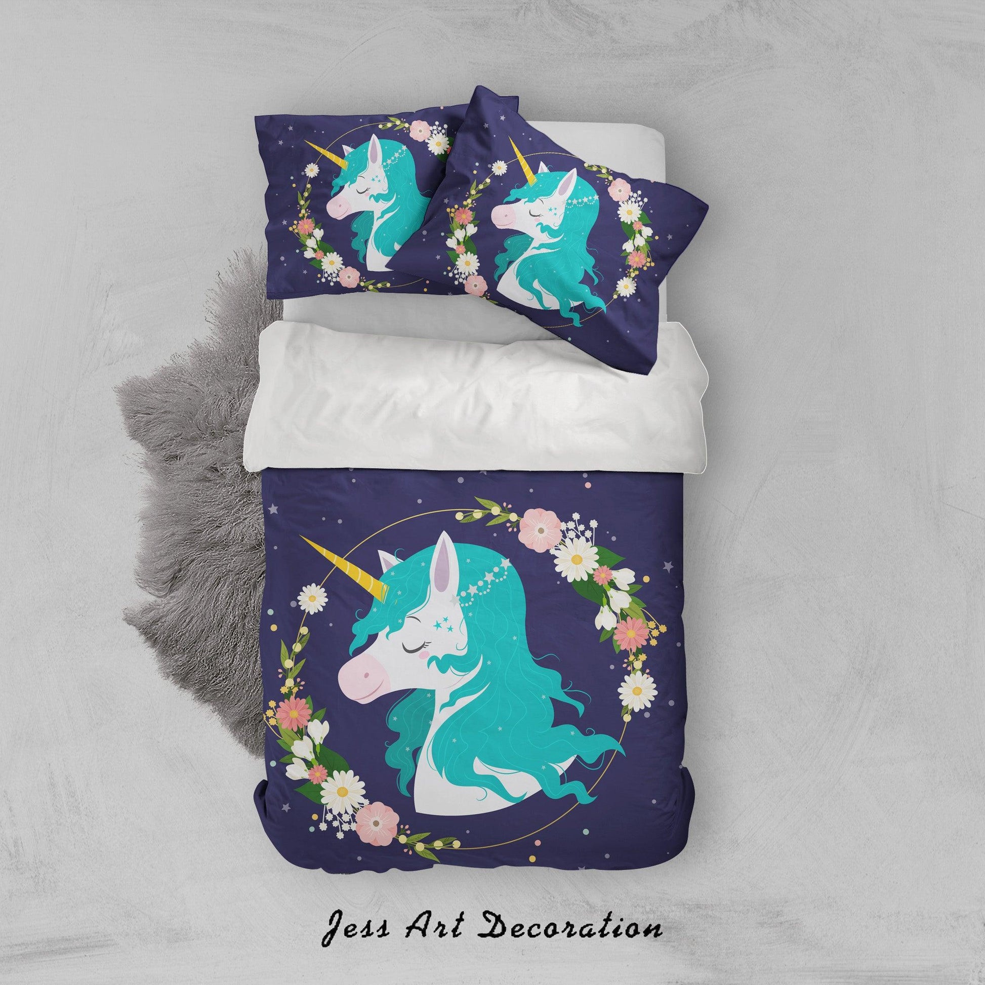 3D Blue Unicorn Floral Quilt Cover Set Bedding Set Pillowcases 25