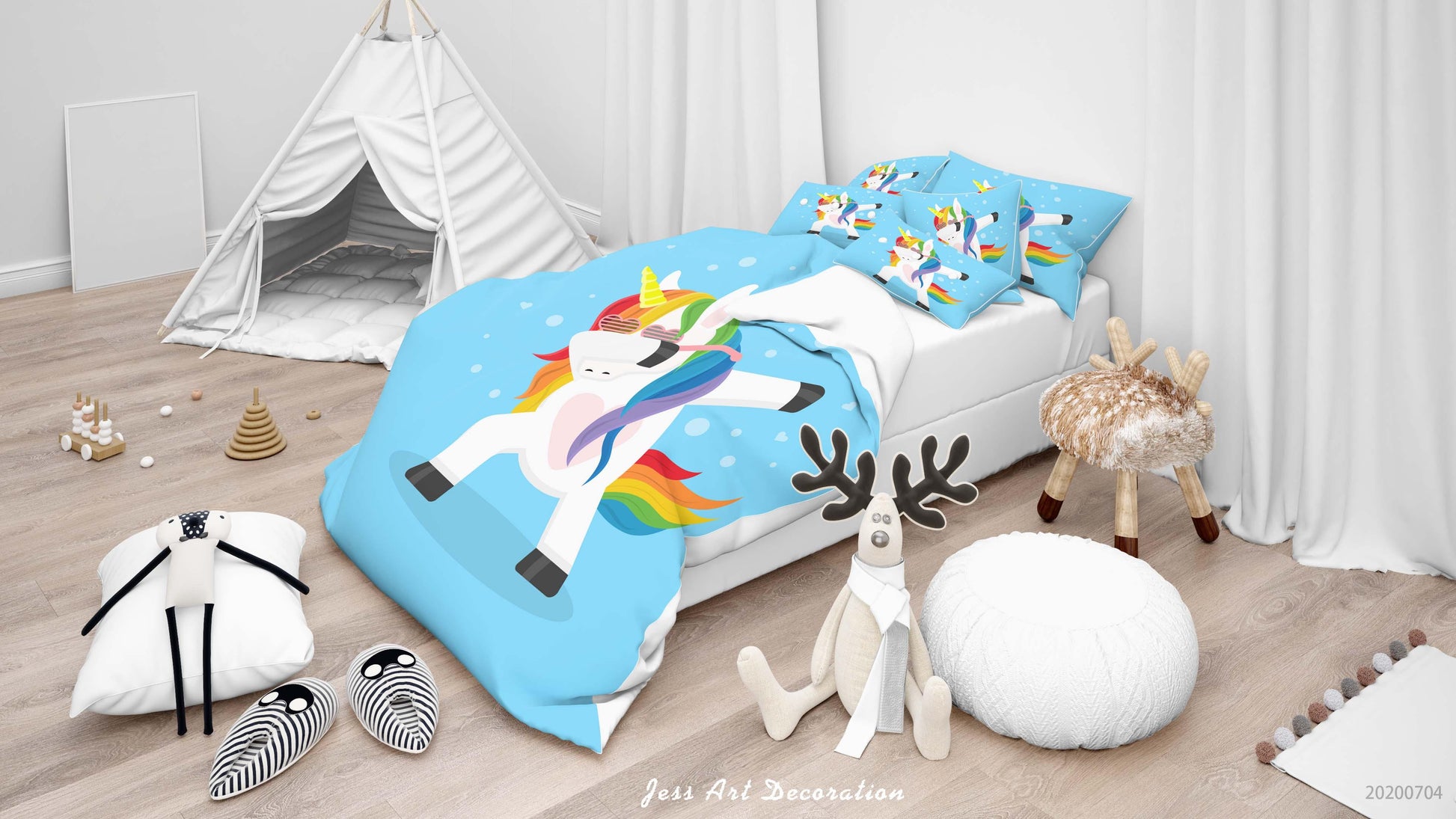3D Blue Unicorn Quilt Cover Set Bedding Set Duvet Cover Pillowcases SF160