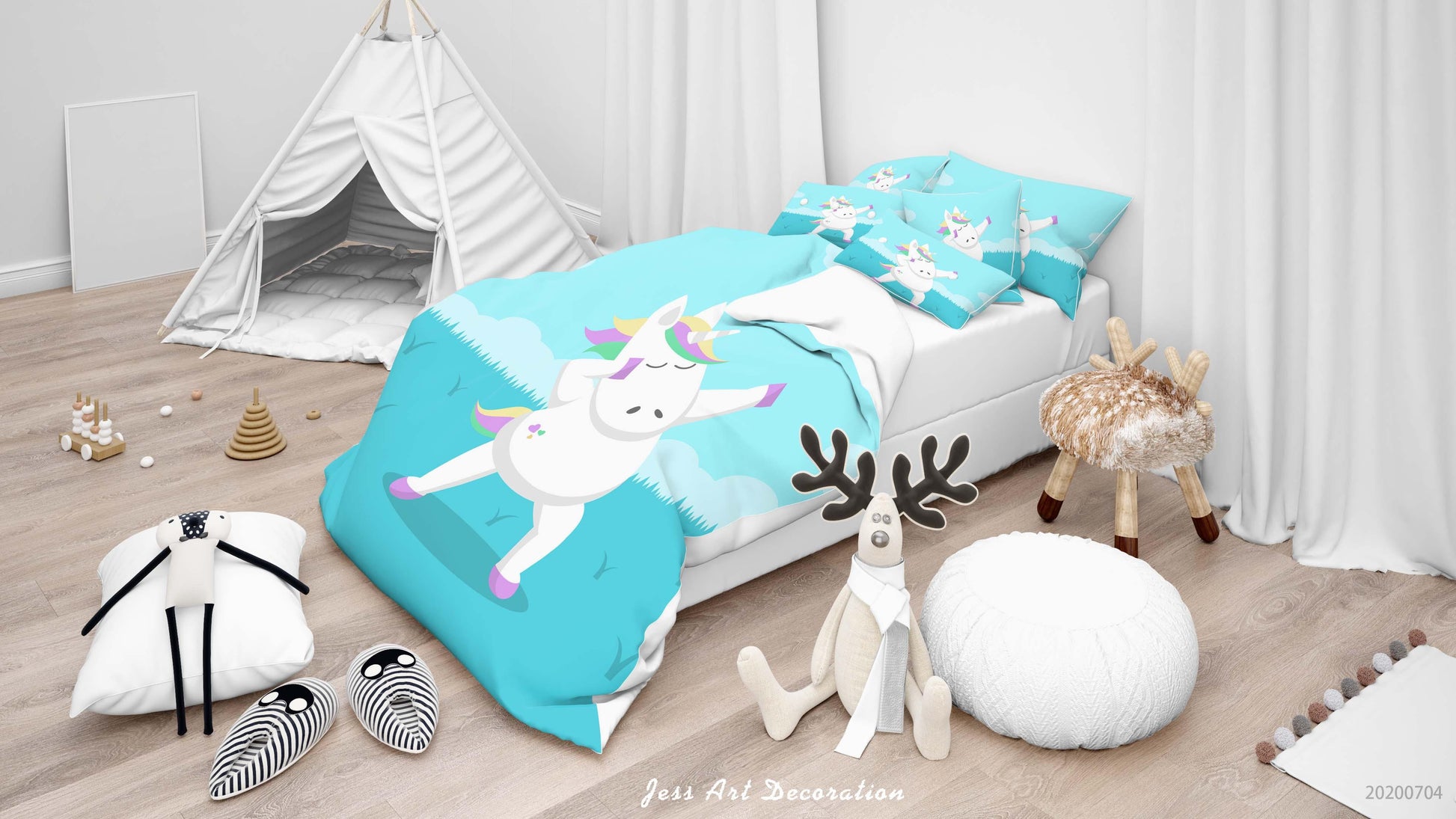 3D Blue Unicorn Quilt Cover Set Bedding Set Duvet Cover Pillowcases SF165