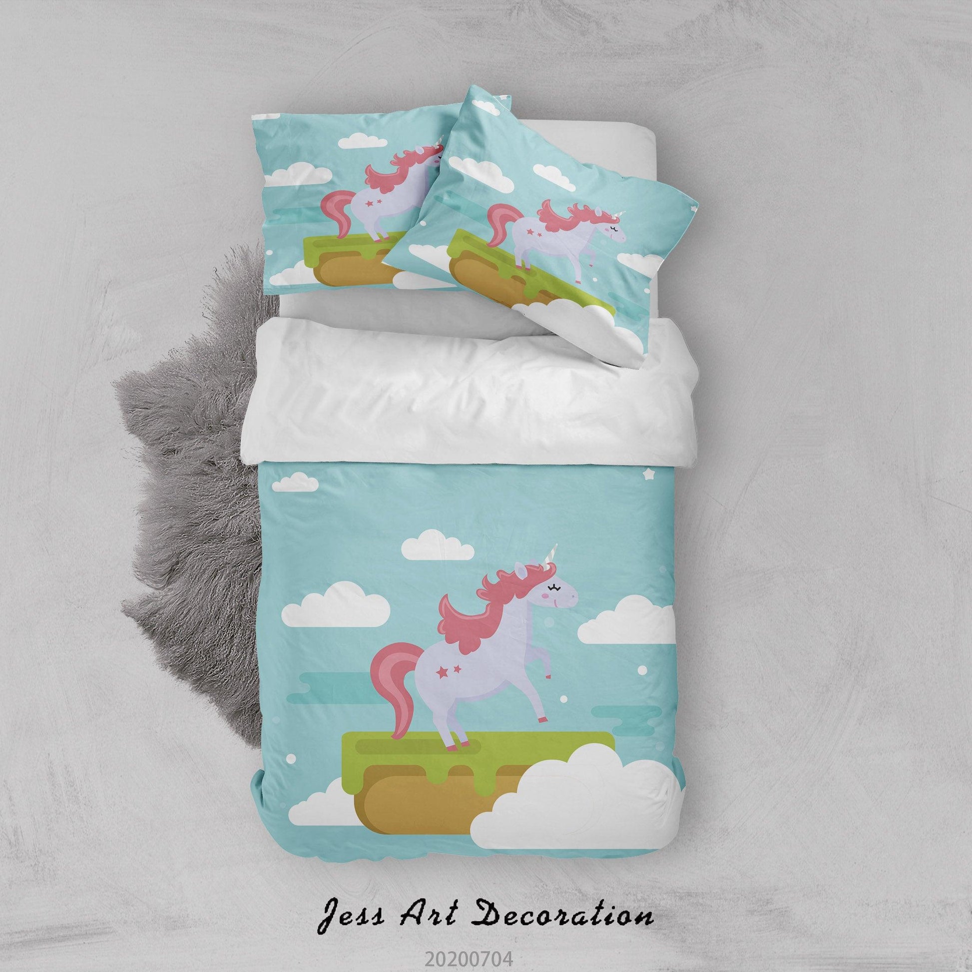3D Blue Unicorn Quilt Cover Set Bedding Set Duvet Cover Pillowcases SF62