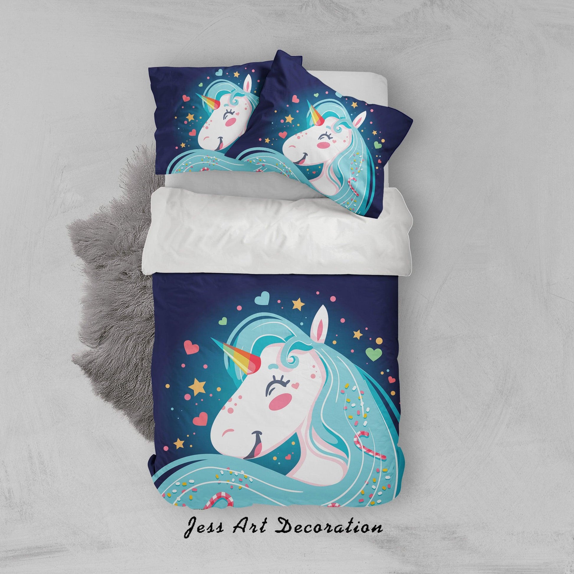 3D Blue Unicorn Quilt Cover Set Bedding Set Pillowcases 02