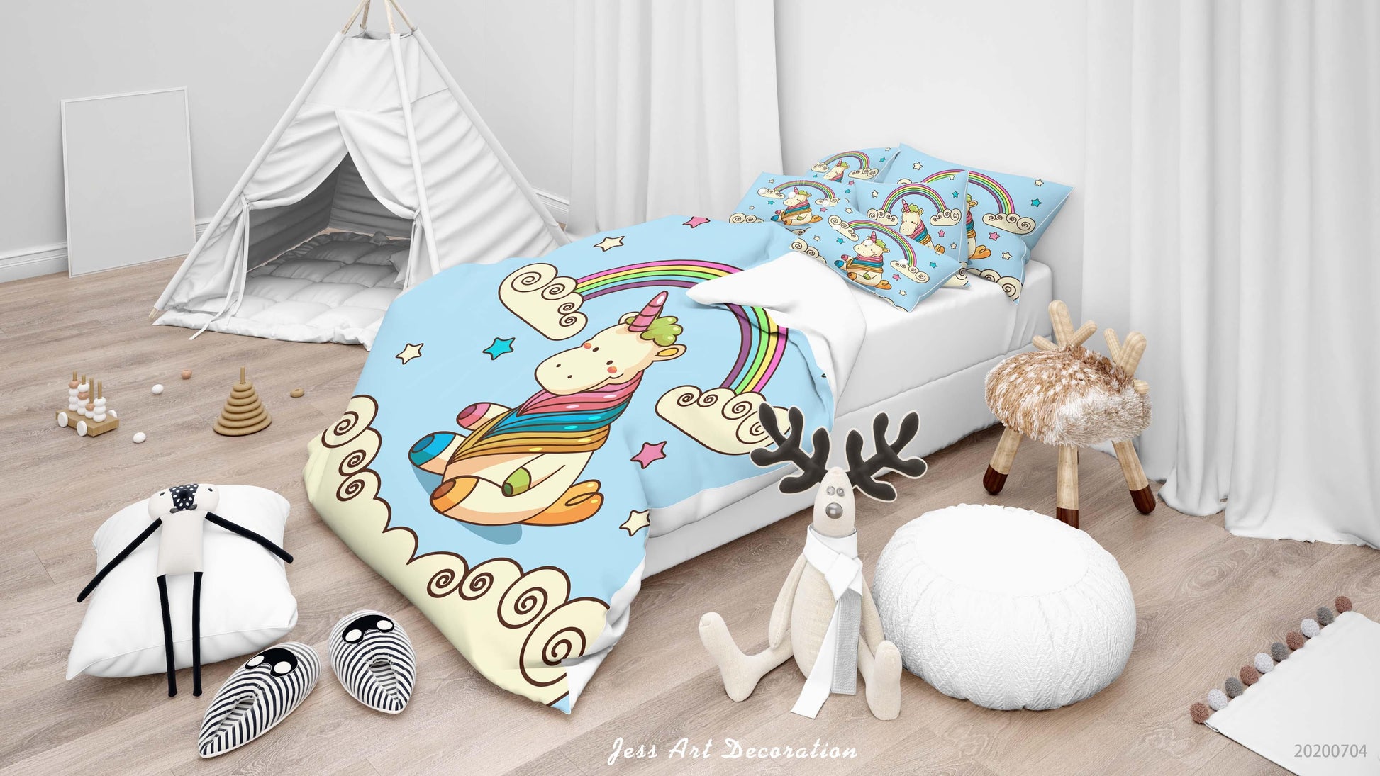 3D Blue Unicorn Rainbow Quilt Cover Set Bedding Set Duvet Cover Pillowcases SF12