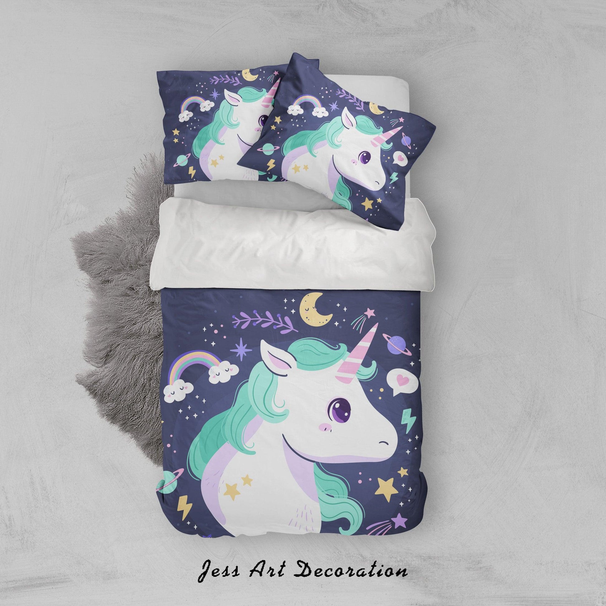 3D Blue Unicorn Rainbow Star Floral Quilt Cover Set Bedding Set Pillowcases 50