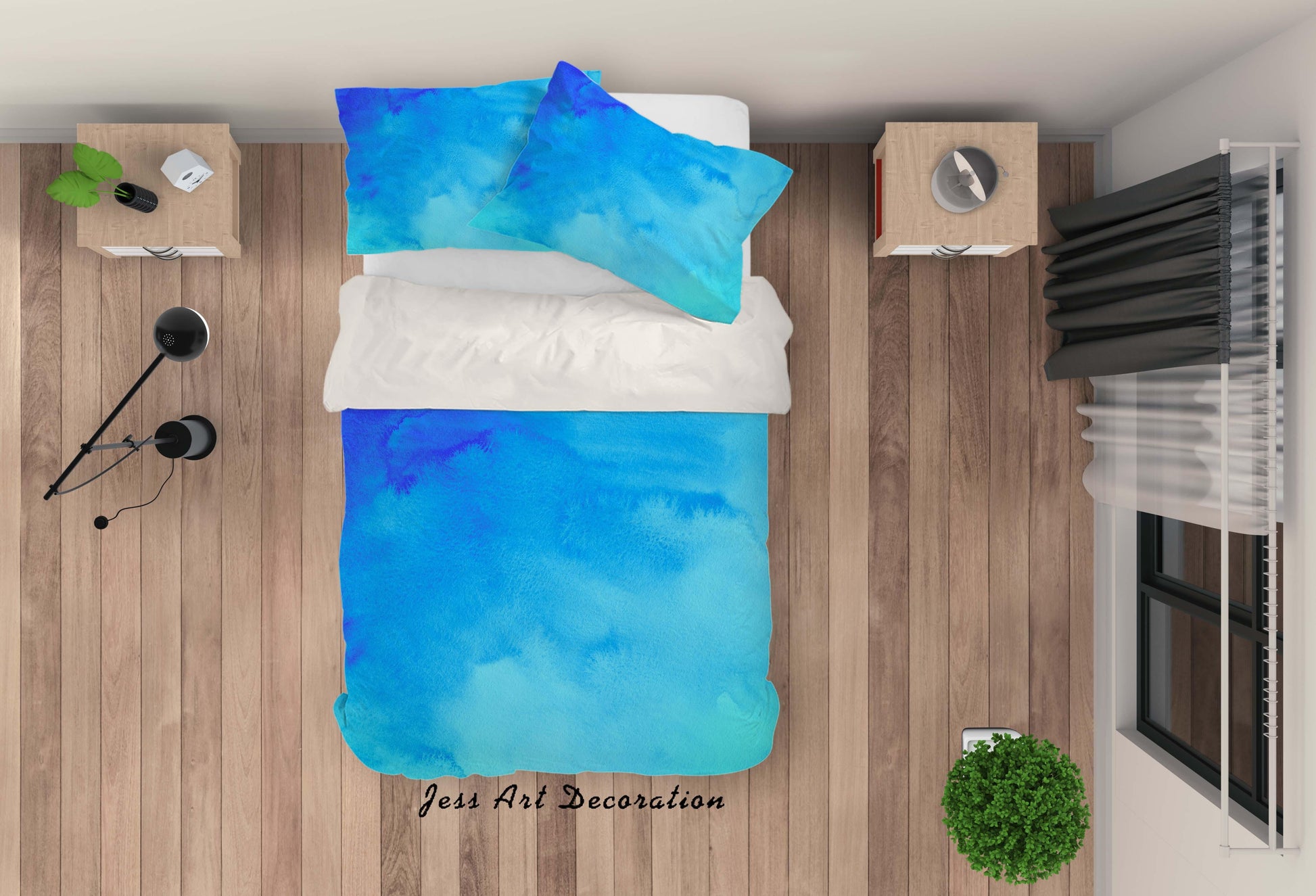 3D Blue Watercolor Quilt Cover Set Bedding Set Pillowcases 44