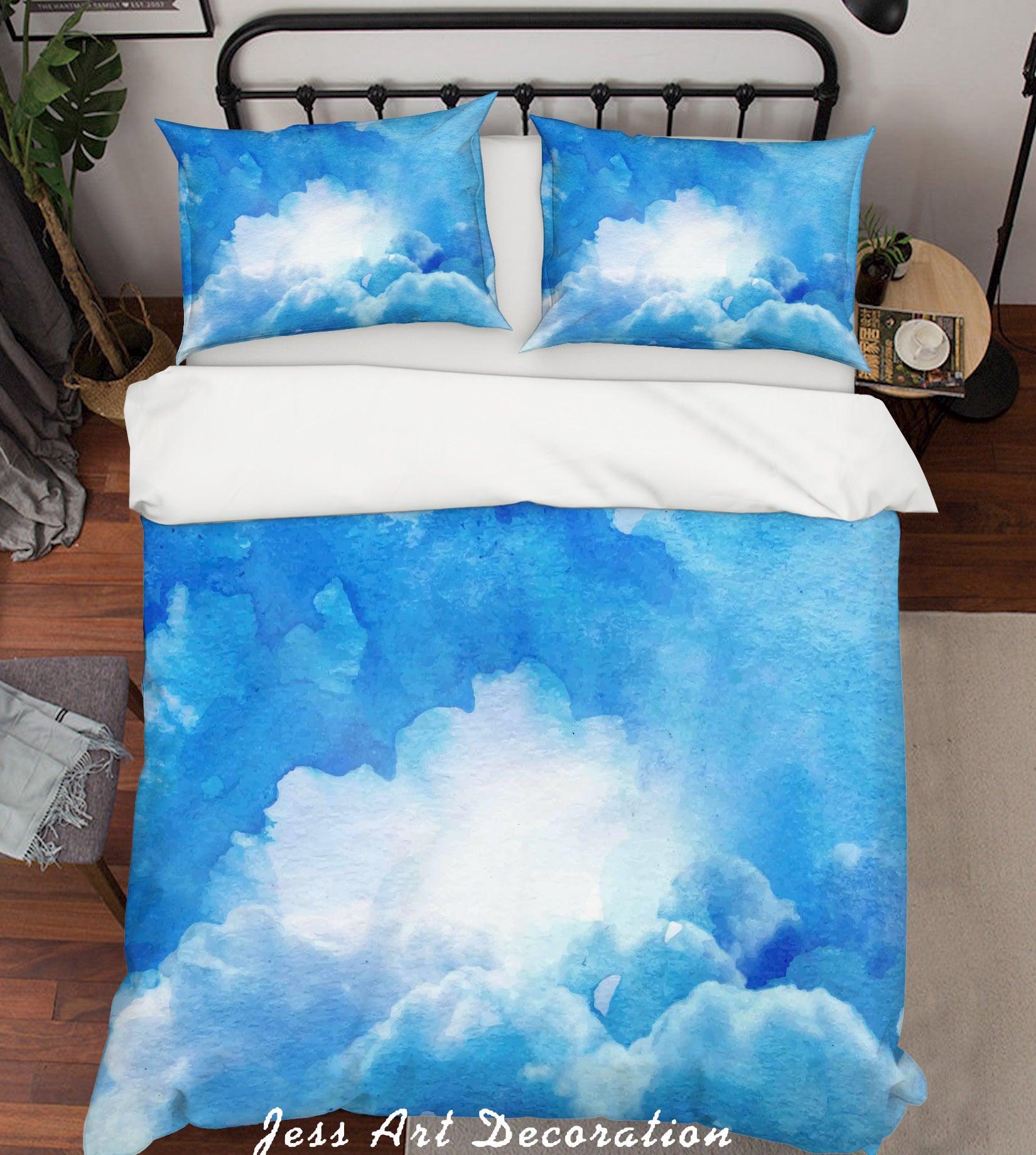 3D Blue Watercolor Sky Clouds Quilt Cover Set Bedding Set Pillowcases 63
