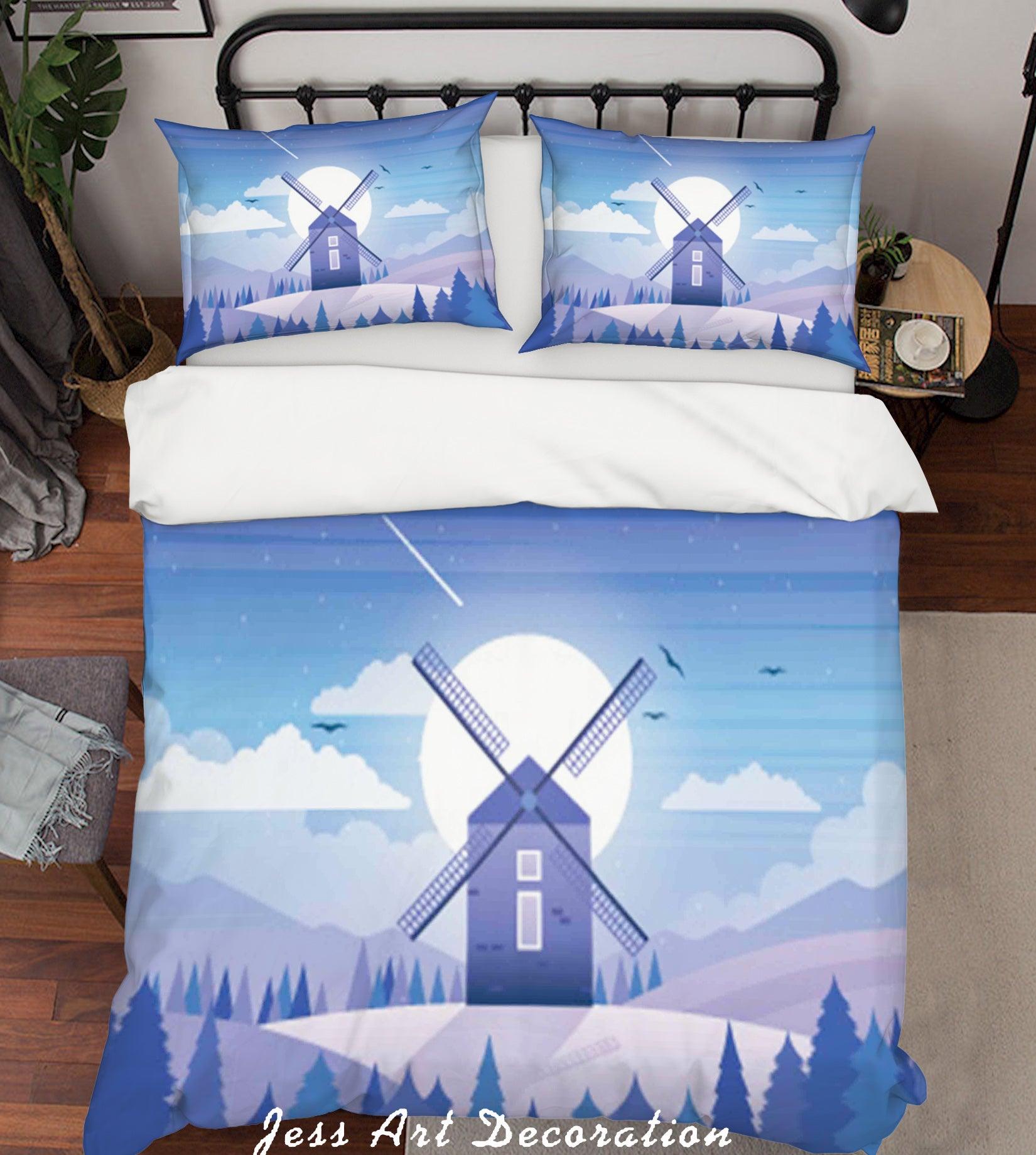 3D Blue Windmill Hill Trees Quilt Cover Set Bedding Set Pillowcases 17