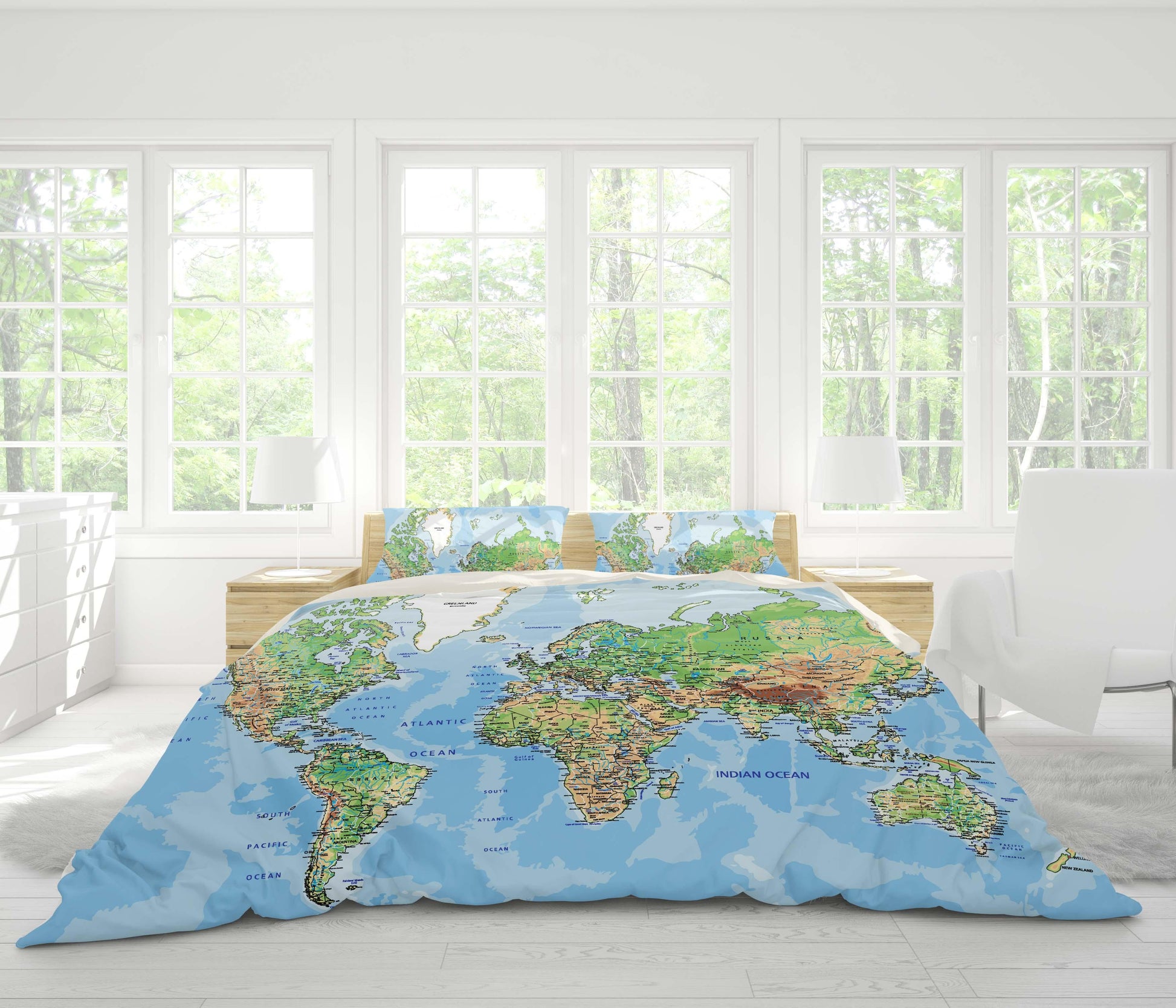 3D Blue World Map Quilt Cover Set Bedding Set Pillowcases 37