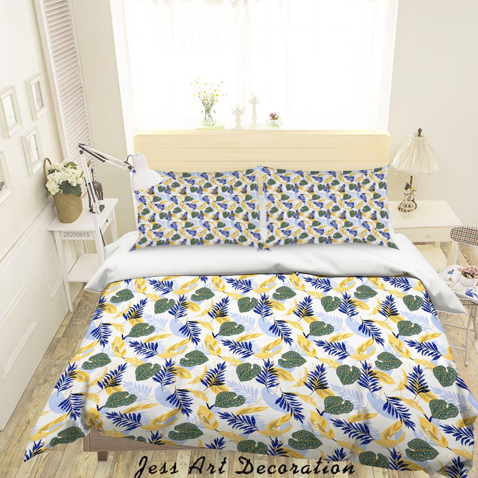 3D Blue Yellow Green Leaves Quilt Cover Set Bedding Set Duvet Cover Pillowcases SF35