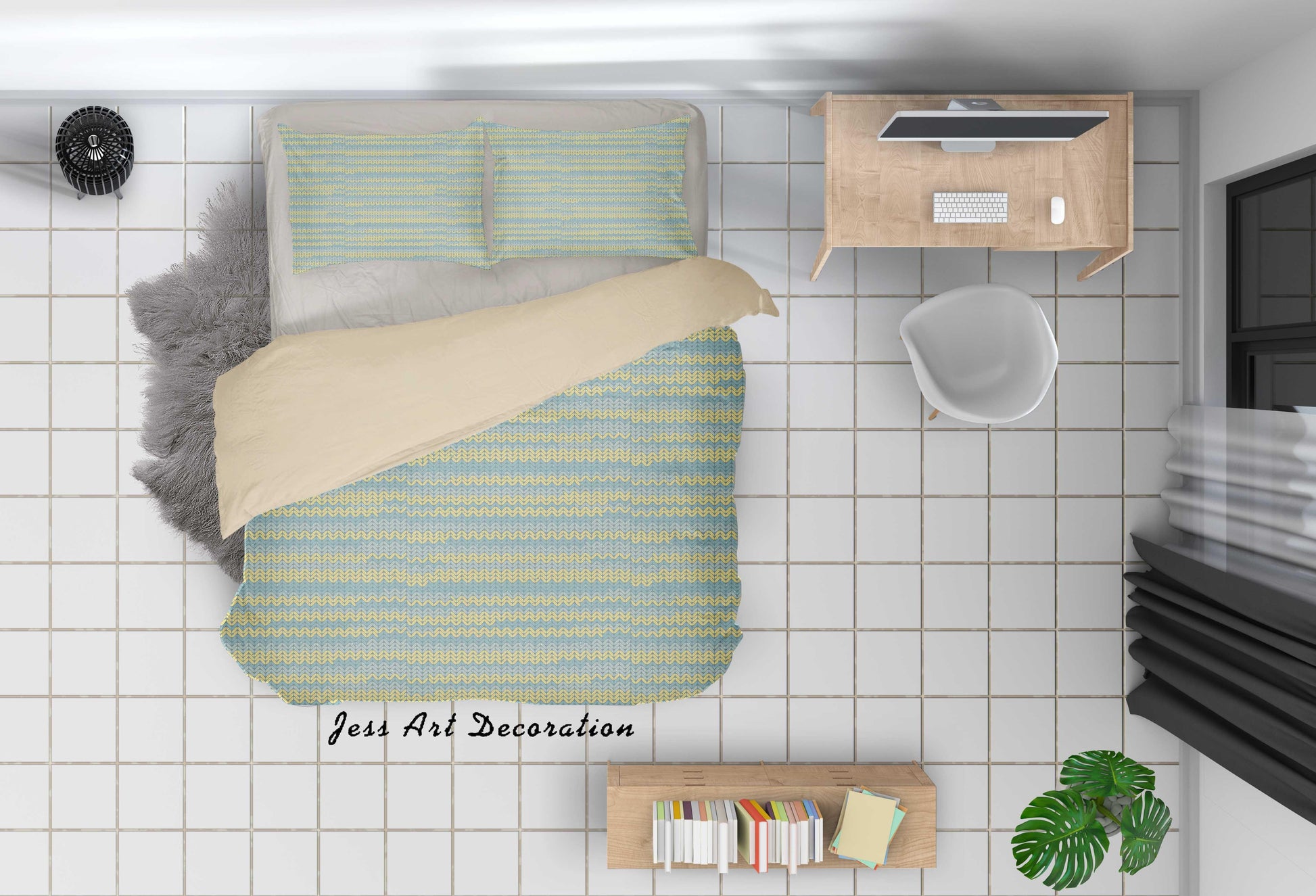3D Blue Yellow Wool Pattern Quilt Cover Set Bedding Set Duvet Cover Pillowcases SF124
