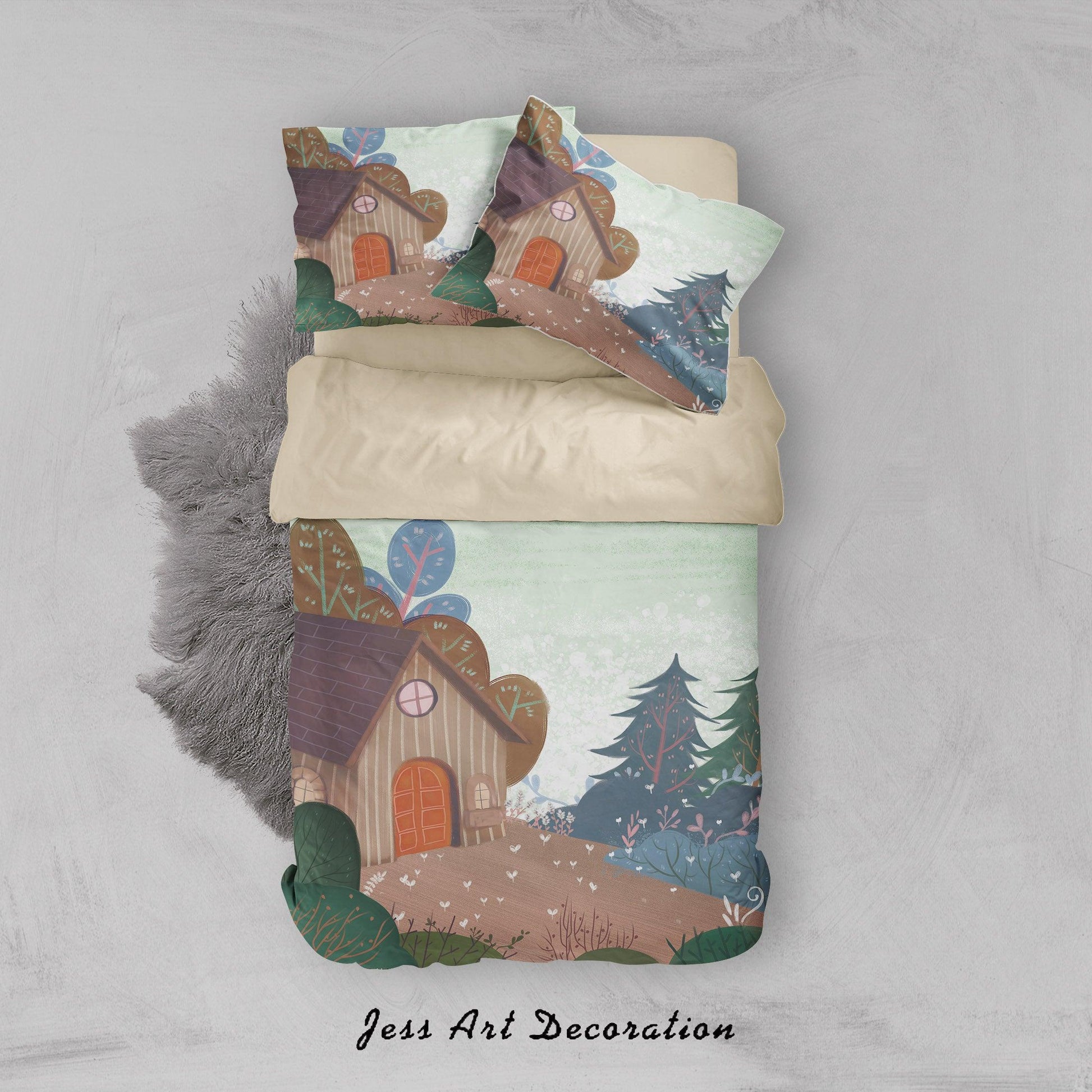 3D Brown House Tree Painting Quilt Cover Set Bedding Set Duvet Cover Pillowcases A461 LQH