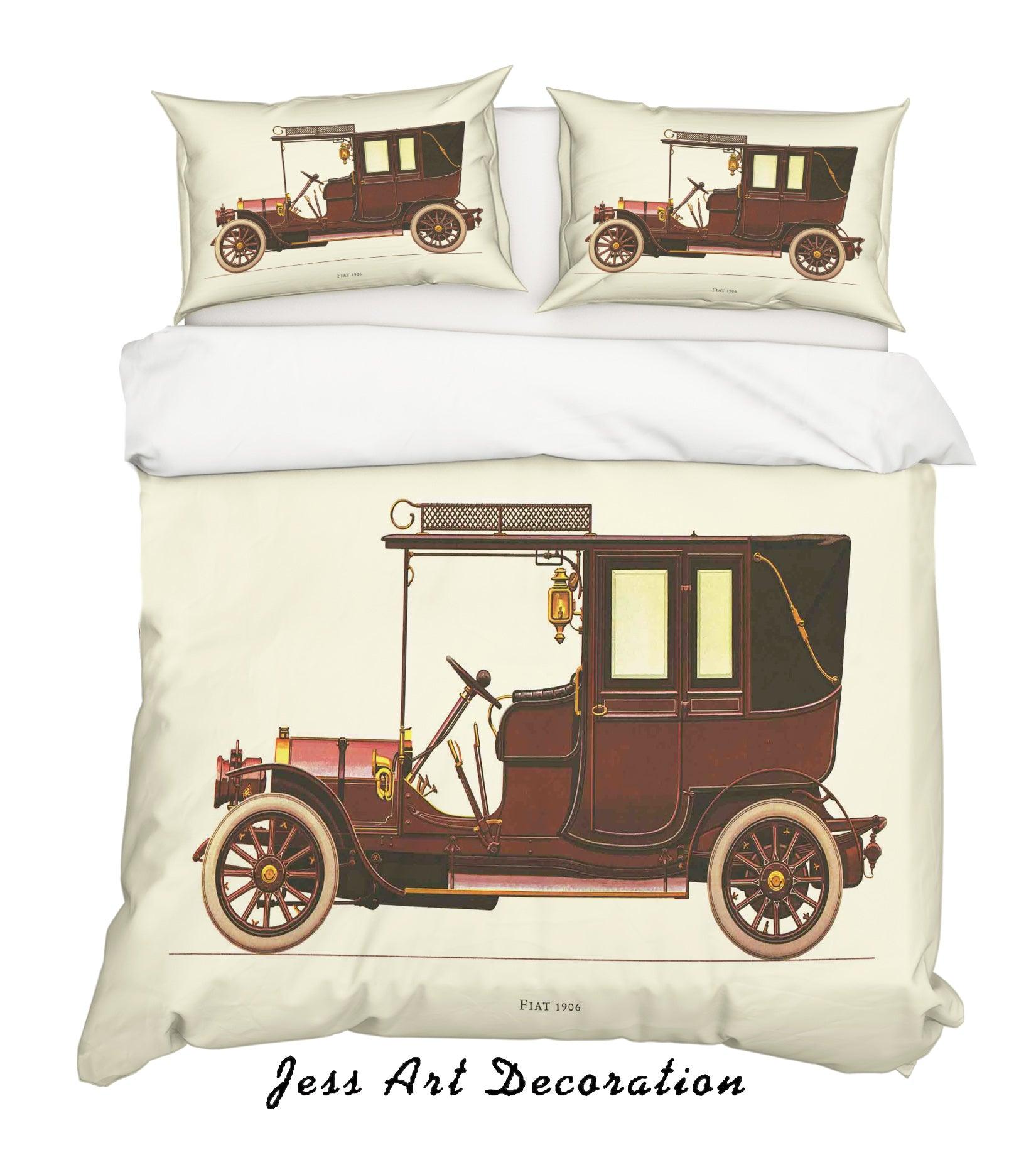 3D Brown Retro Car Quilt Cover Set Bedding Set Pillowcases 17