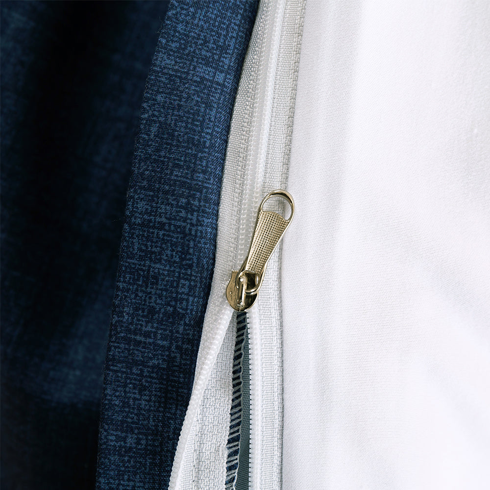 - Duvet cover with ties at the four corners to keep the comforter in place. It also gets a zipper closure.