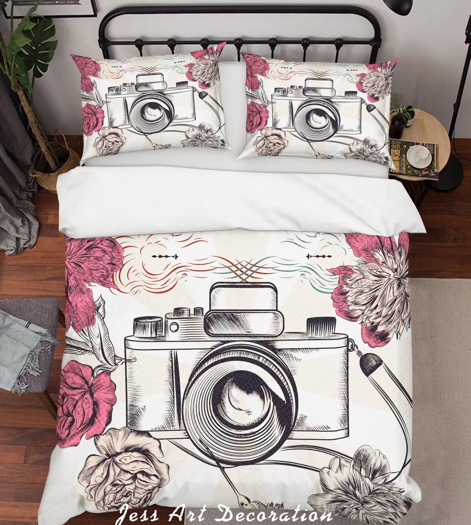3D Camera Floral Quilt Cover Set Bedding Set Duvet Cover Pillowcases SF97