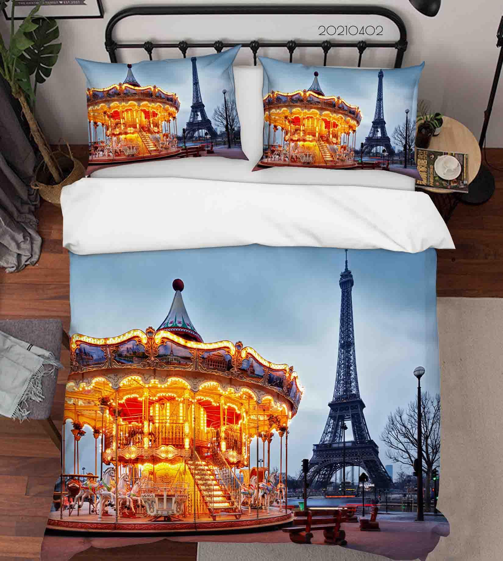 3D Carousel Tower Landscape Quilt Cover Set Bedding Set Duvet Cover Pillowcases 75 LQH