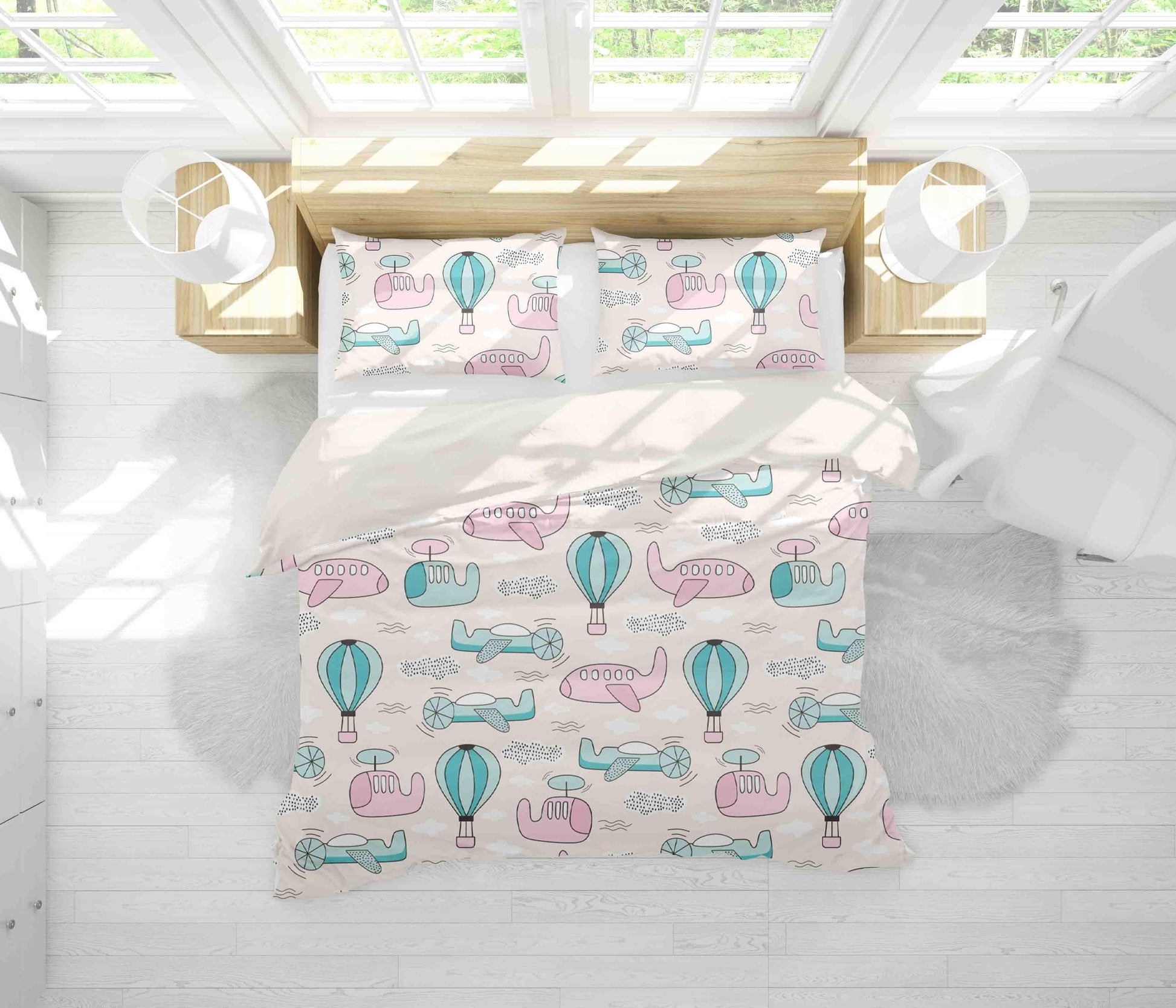 3D Cartoon Airplane Hot Air Balloon Quilt Cover Set Bedding Set Duvet Cover Pillowcases LXL