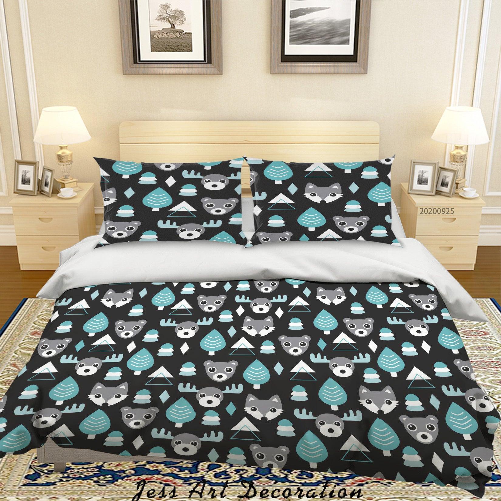 3D Cartoon Animal Bear Fox Tree Pattern Quilt Cover Set Bedding Set Duvet Cover Pillowcases WJ 6442