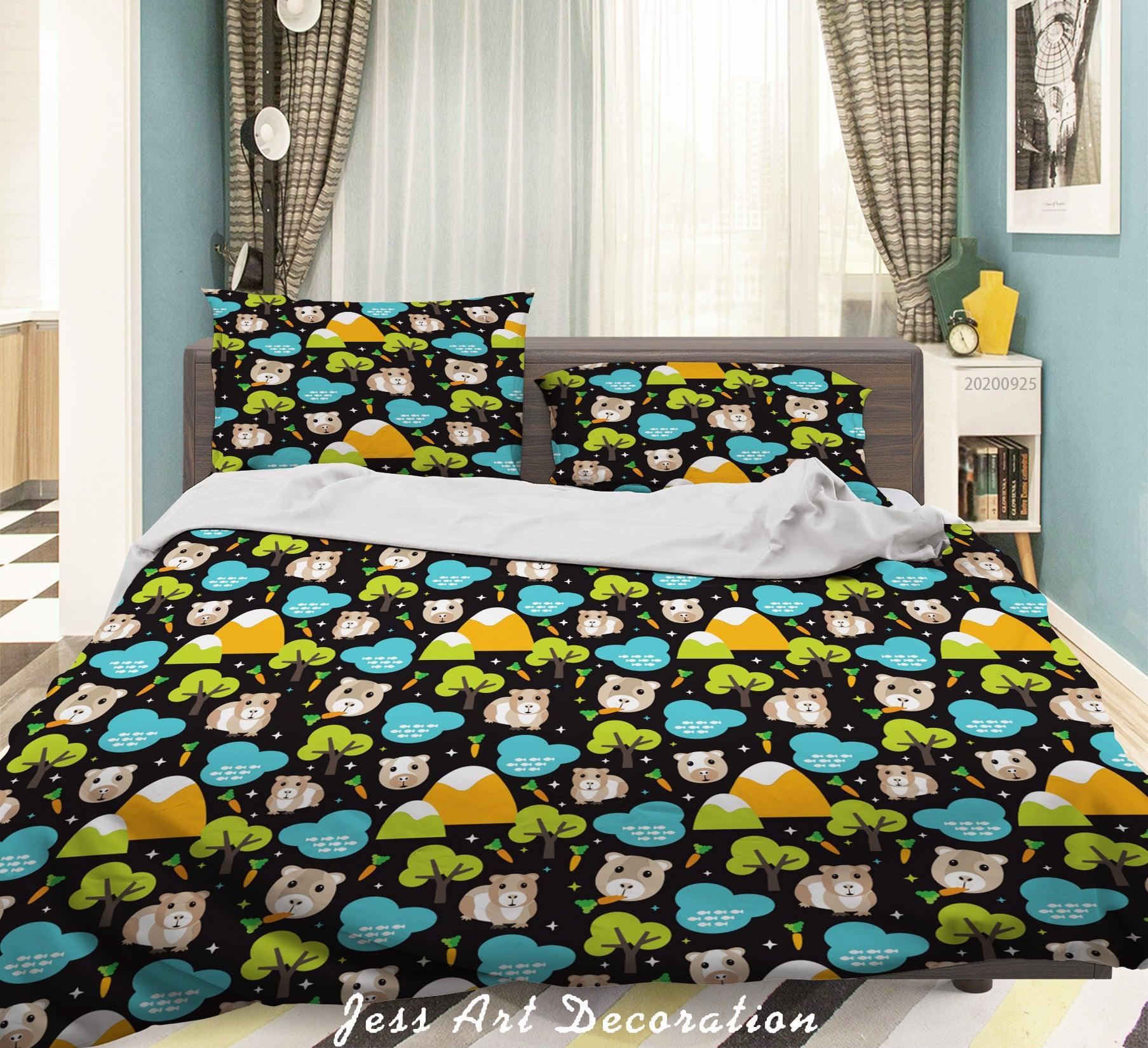 3D Cartoon Animal Bear Head Tree Pattern Quilt Cover Set Bedding Set Duvet Cover Pillowcases WJ 6484