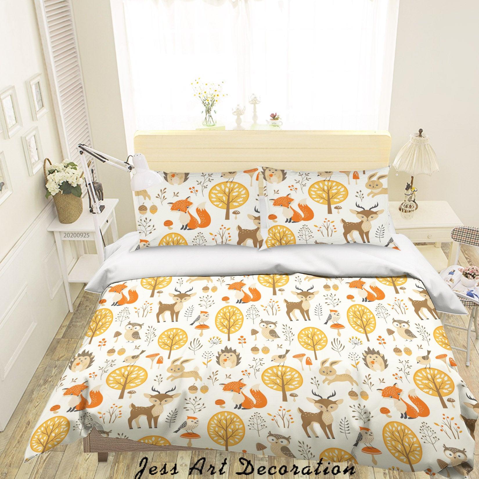 3D Cartoon Animal Bird Fox Tree Pattern Quilt Cover Set Bedding Set Duvet Cover Pillowcases WJ 6443