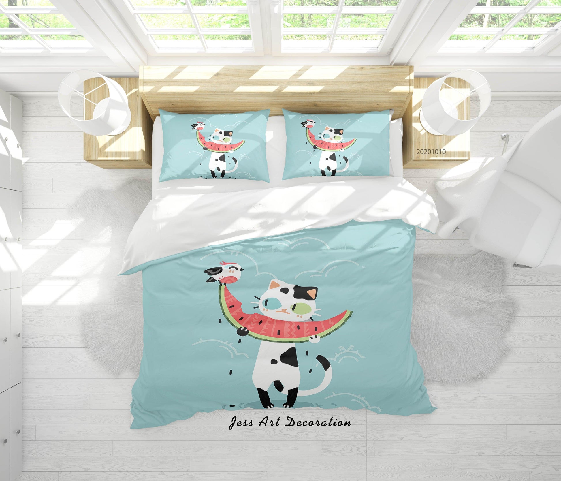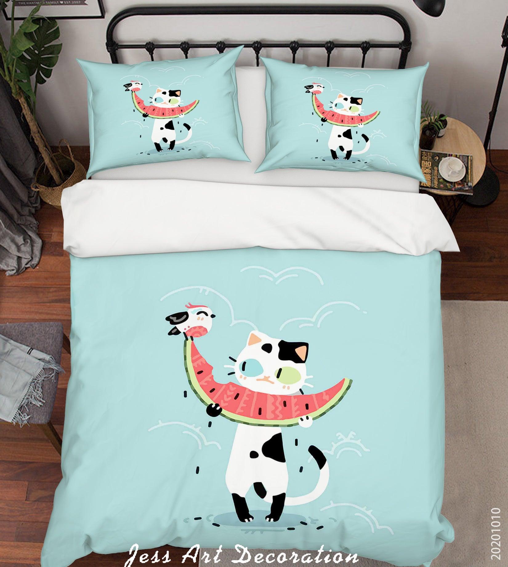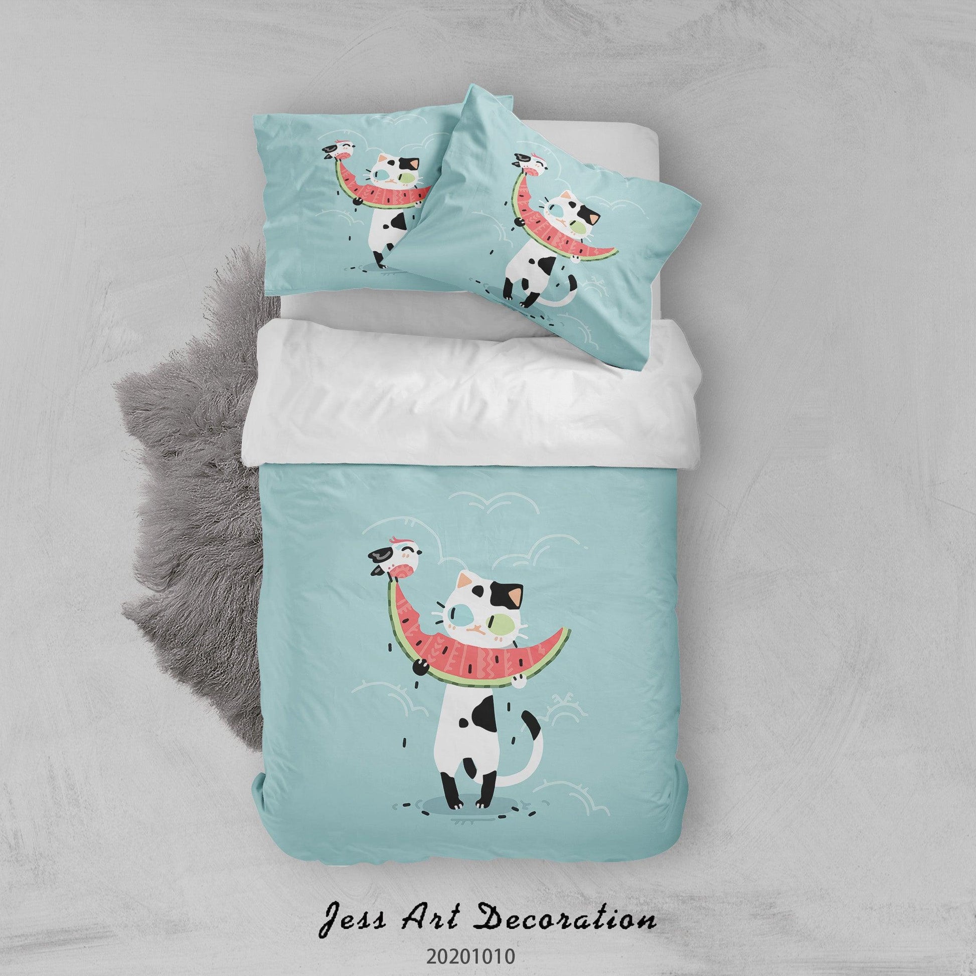 3D Cartoon Animal Cat Watermelon Quilt Cover Set Bedding Set Duvet Cover Pillowcases WJ 9580