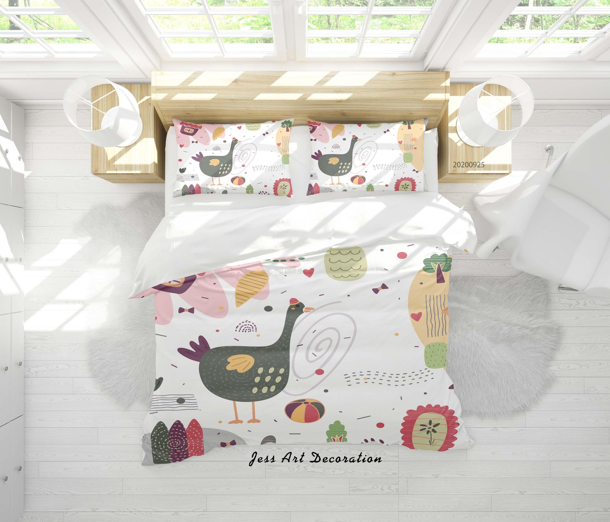 3D Cartoon Animal Chicken Pattern Quilt Cover Set Bedding Set Duvet Cover Pillowcases WJ 6461