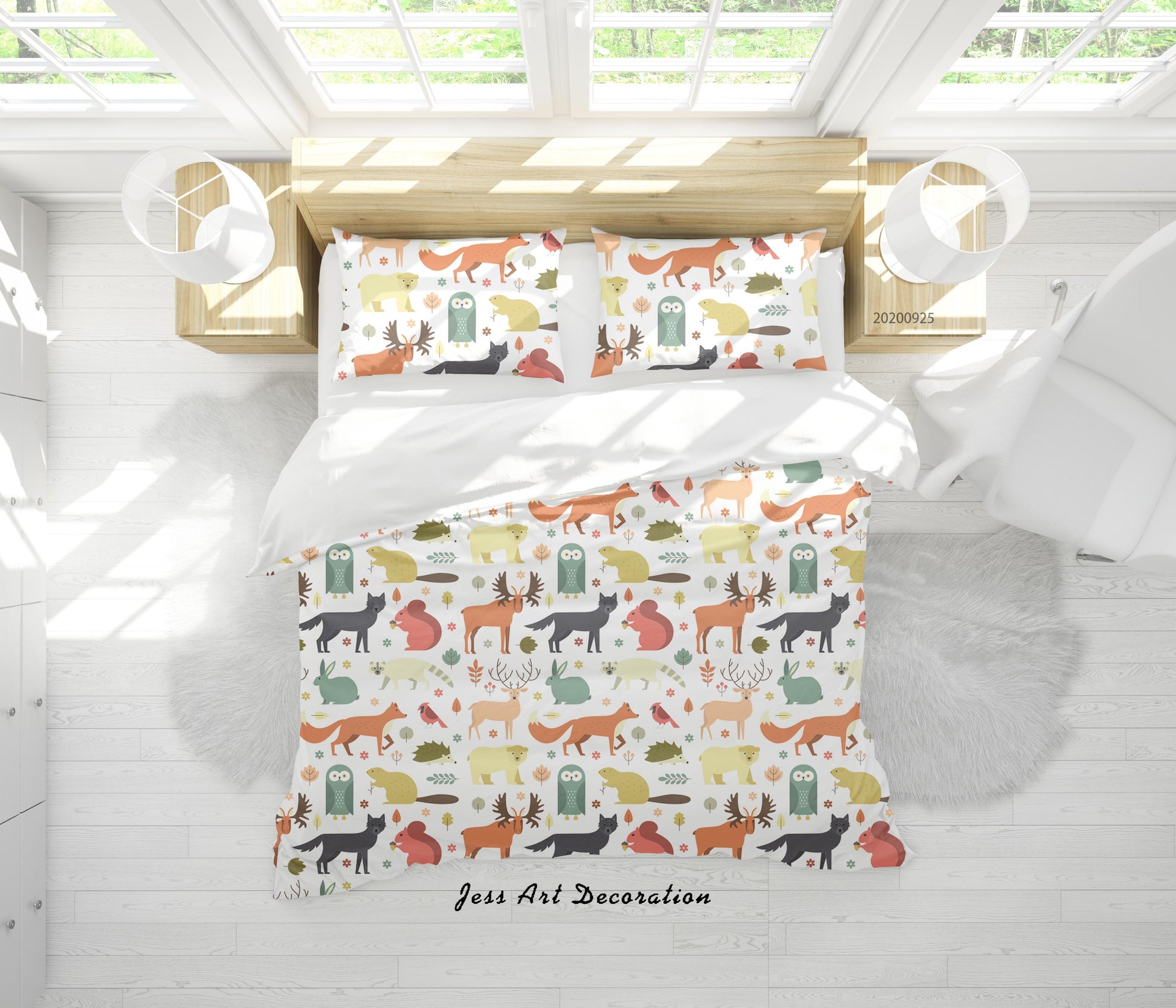 3D Cartoon Animal Deer Fox Wolf Pattern Quilt Cover Set Bedding Set Duvet Cover Pillowcases WJ 6505