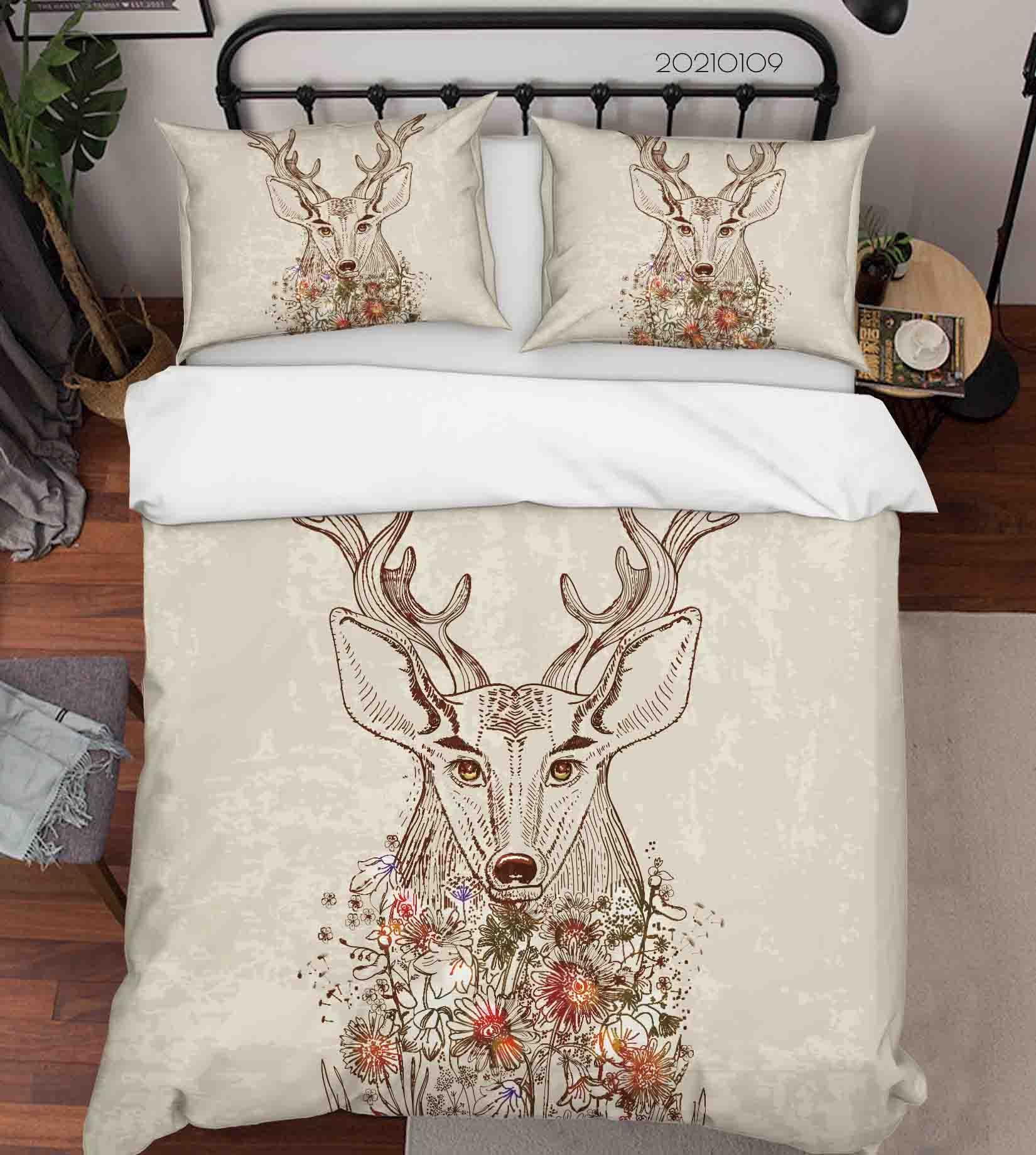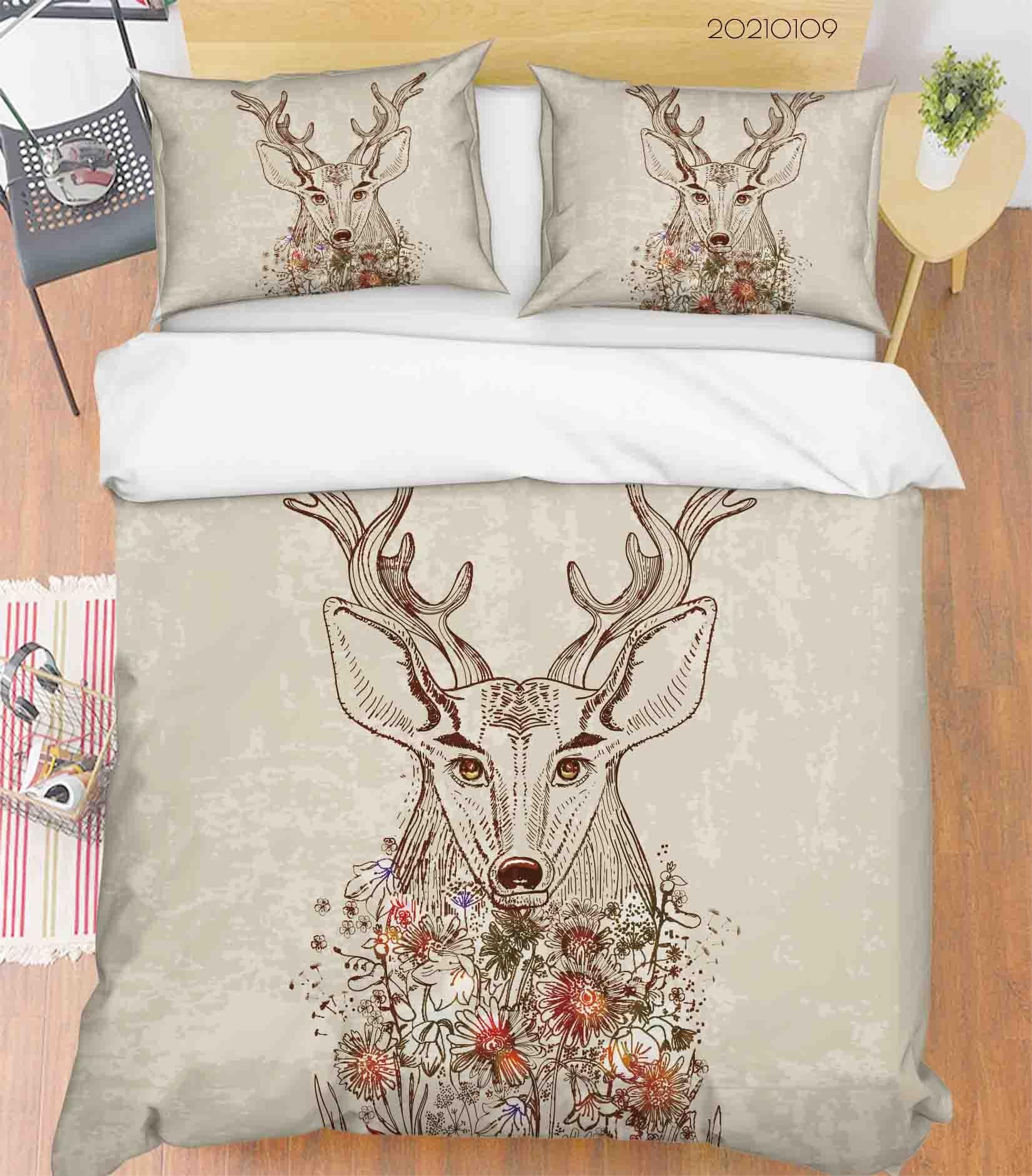 3D Cartoon Animal Elk Flowers Quilt Cover Set Bedding Set Duvet Cover Pillowcases 72 LQH