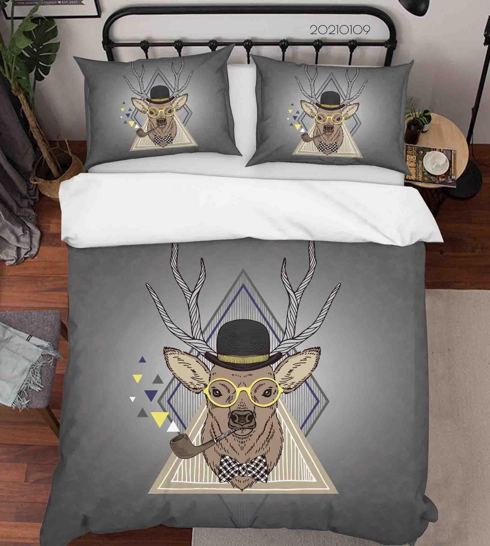 3D Cartoon Animal Elk Grey Quilt Cover Set Bedding Set Duvet Cover Pillowcases 71 LQH