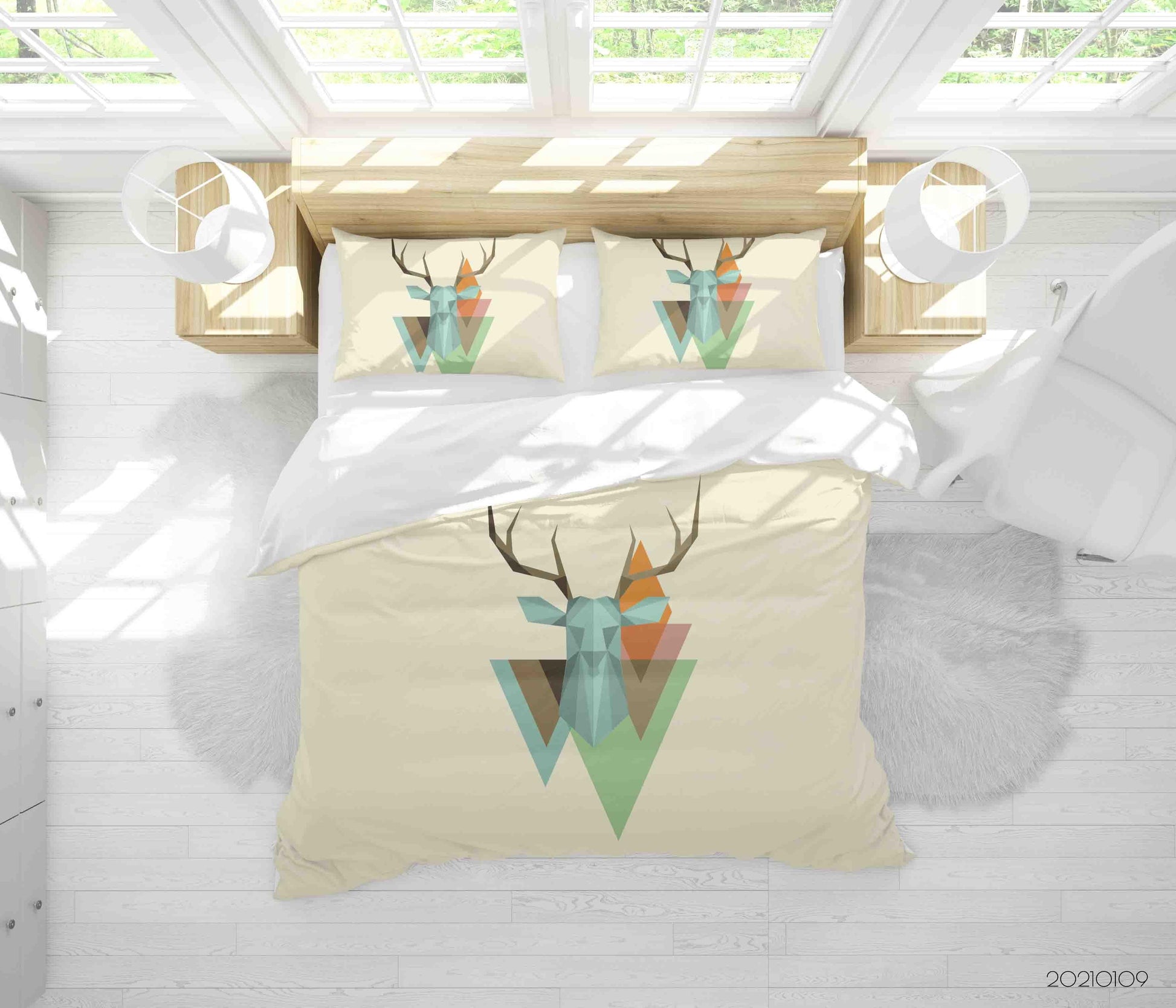 3D Cartoon Animal Elk Triangle Quilt Cover Set Bedding Set Duvet Cover Pillowcases 76 LQH