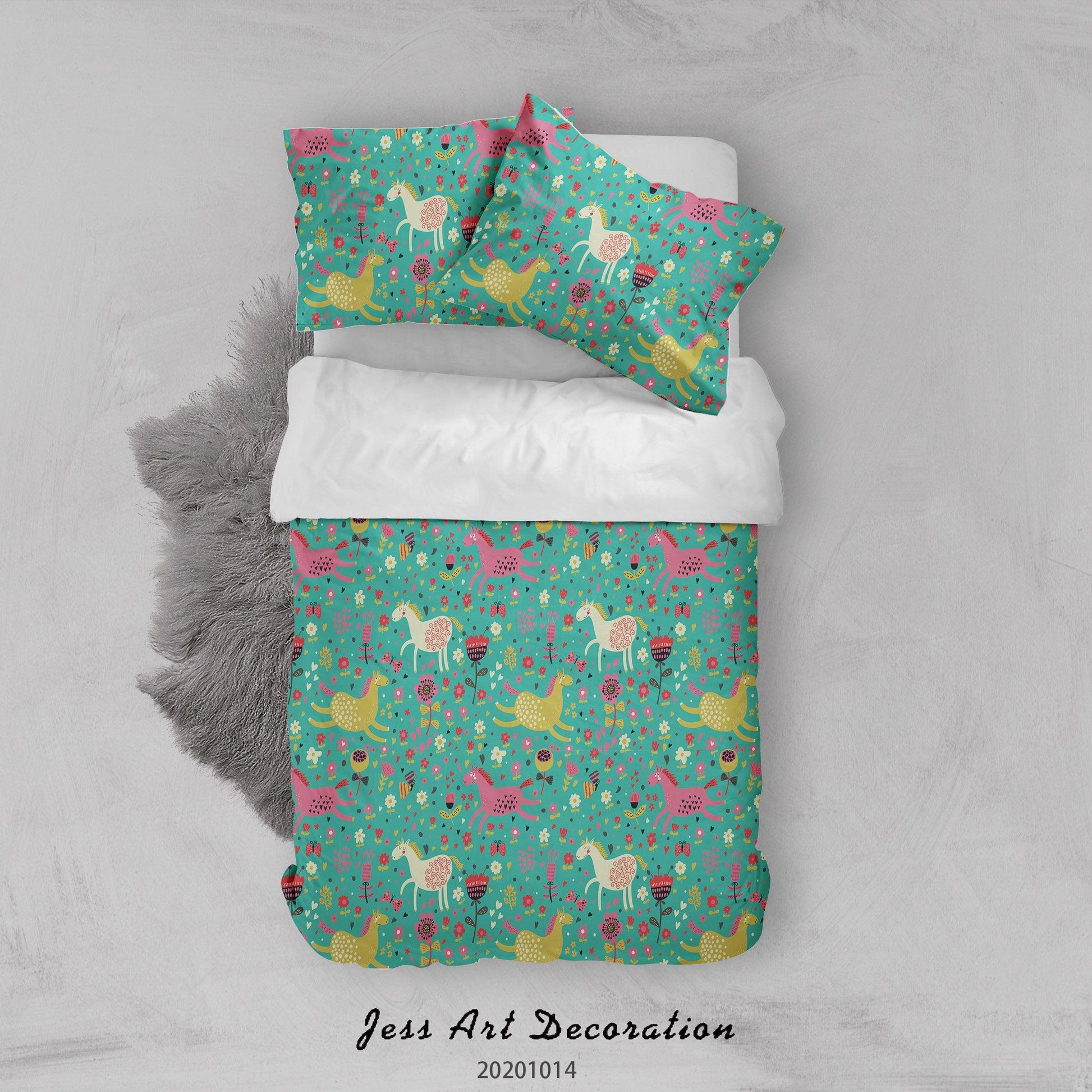 3D Cartoon Animal Horses Flowers Pattern Quilt Cover Set Bedding Set Duvet Cover Pillowcases WJ 9703