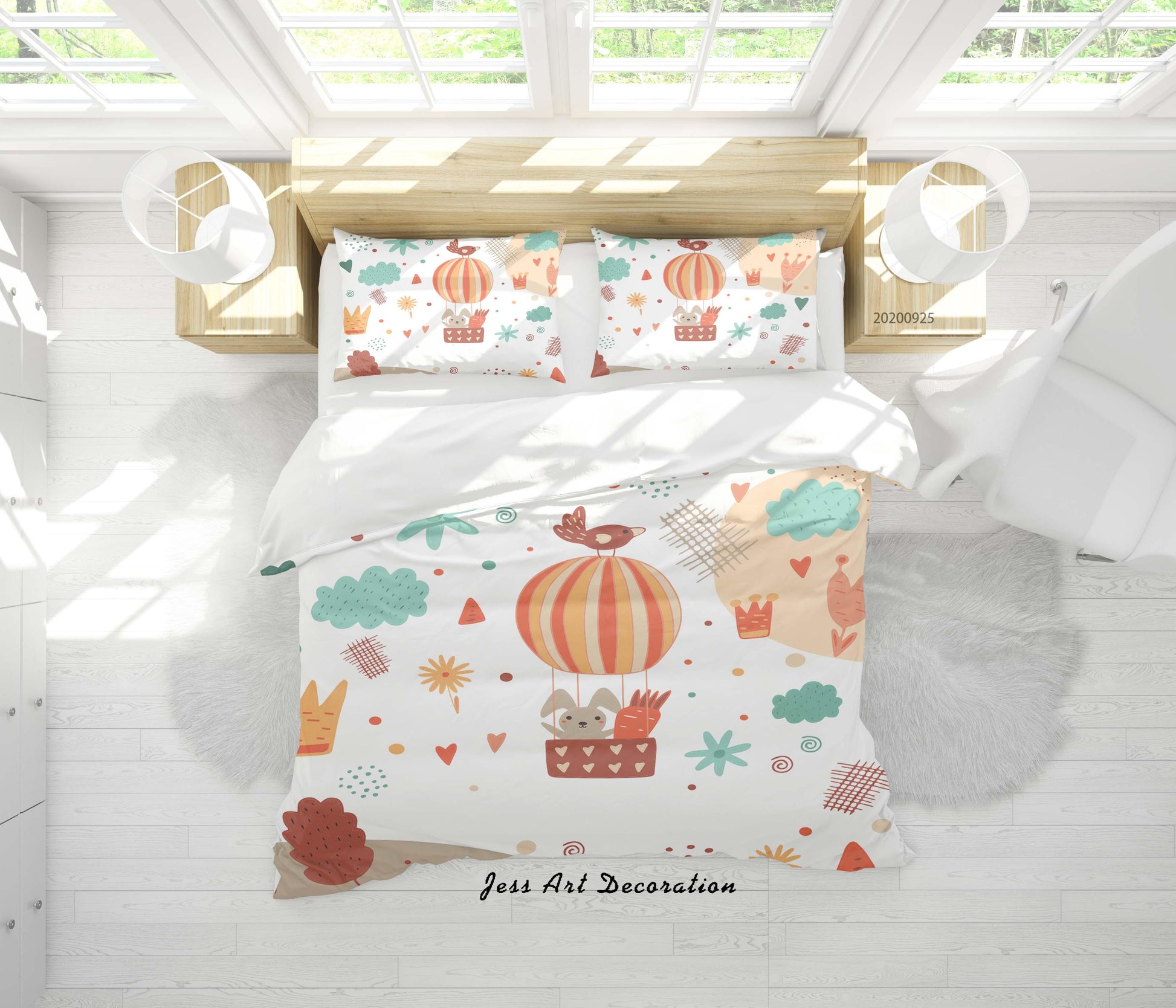 3D Cartoon Animal Hot-Air Balloon Cat Pattern Quilt Cover Set Bedding Set Duvet Cover Pillowcases WJ 6453