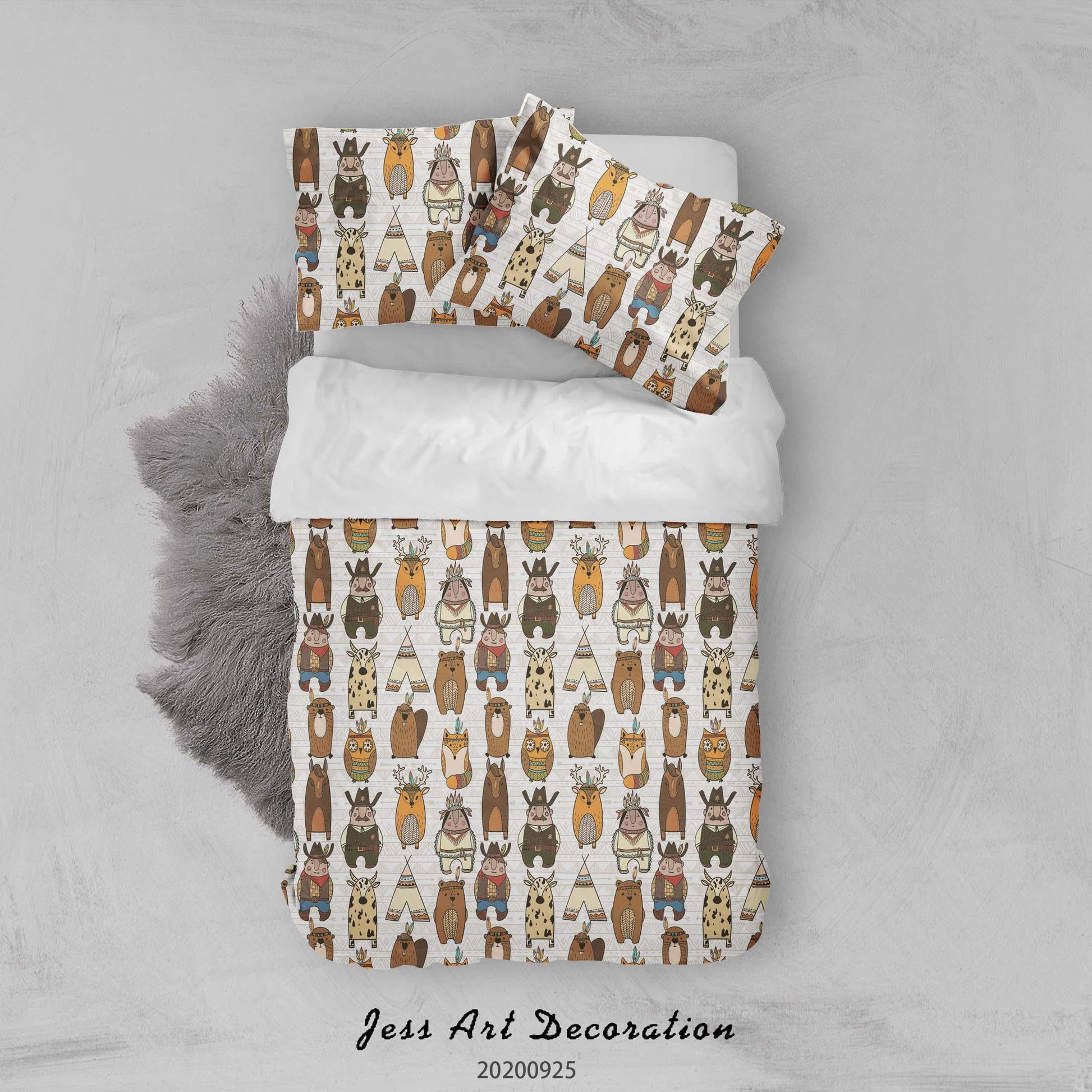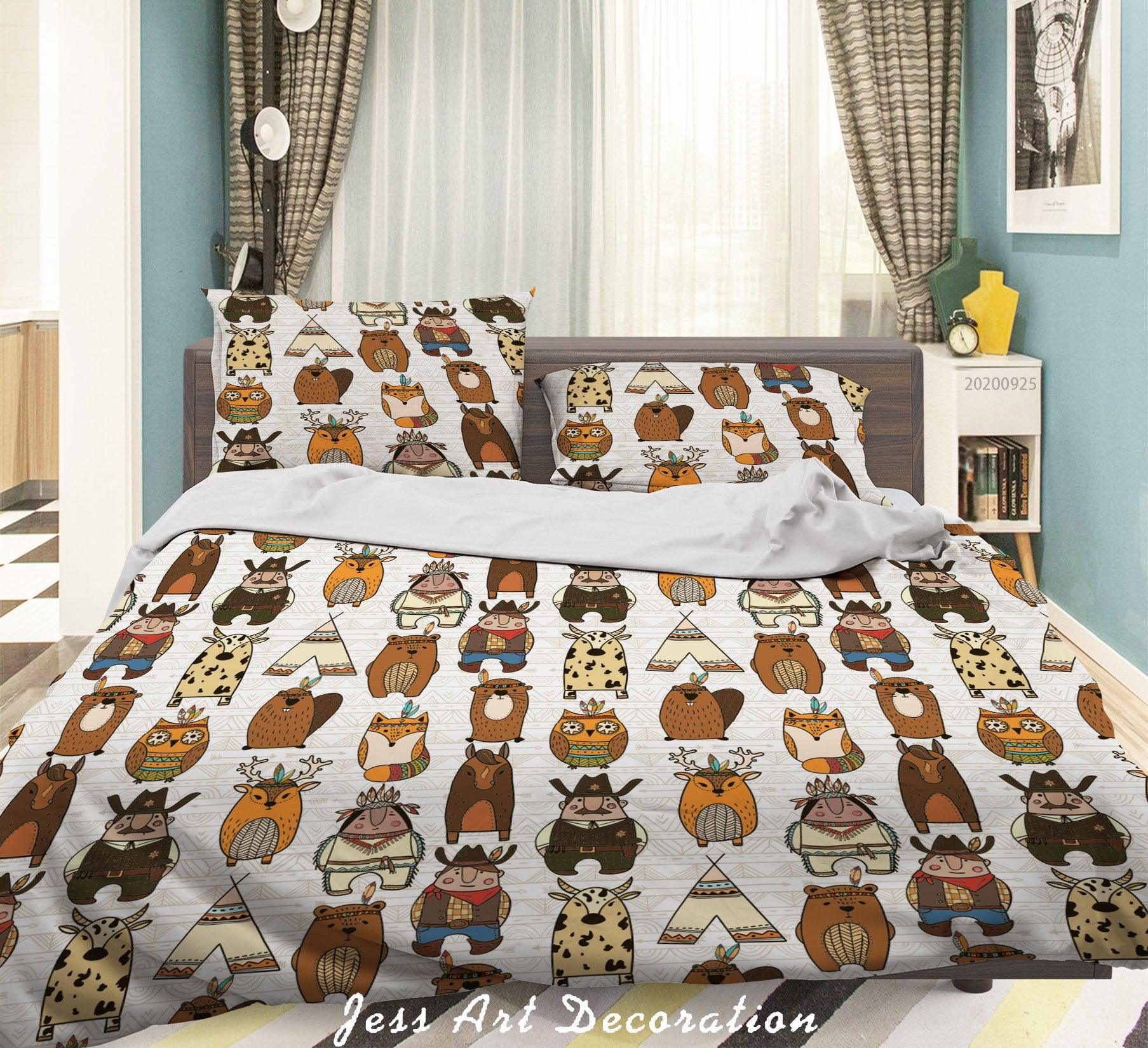 3D Cartoon Animal Indian Boy Bear Pattern Quilt Cover Set Bedding Set Duvet Cover Pillowcases WJ 6506