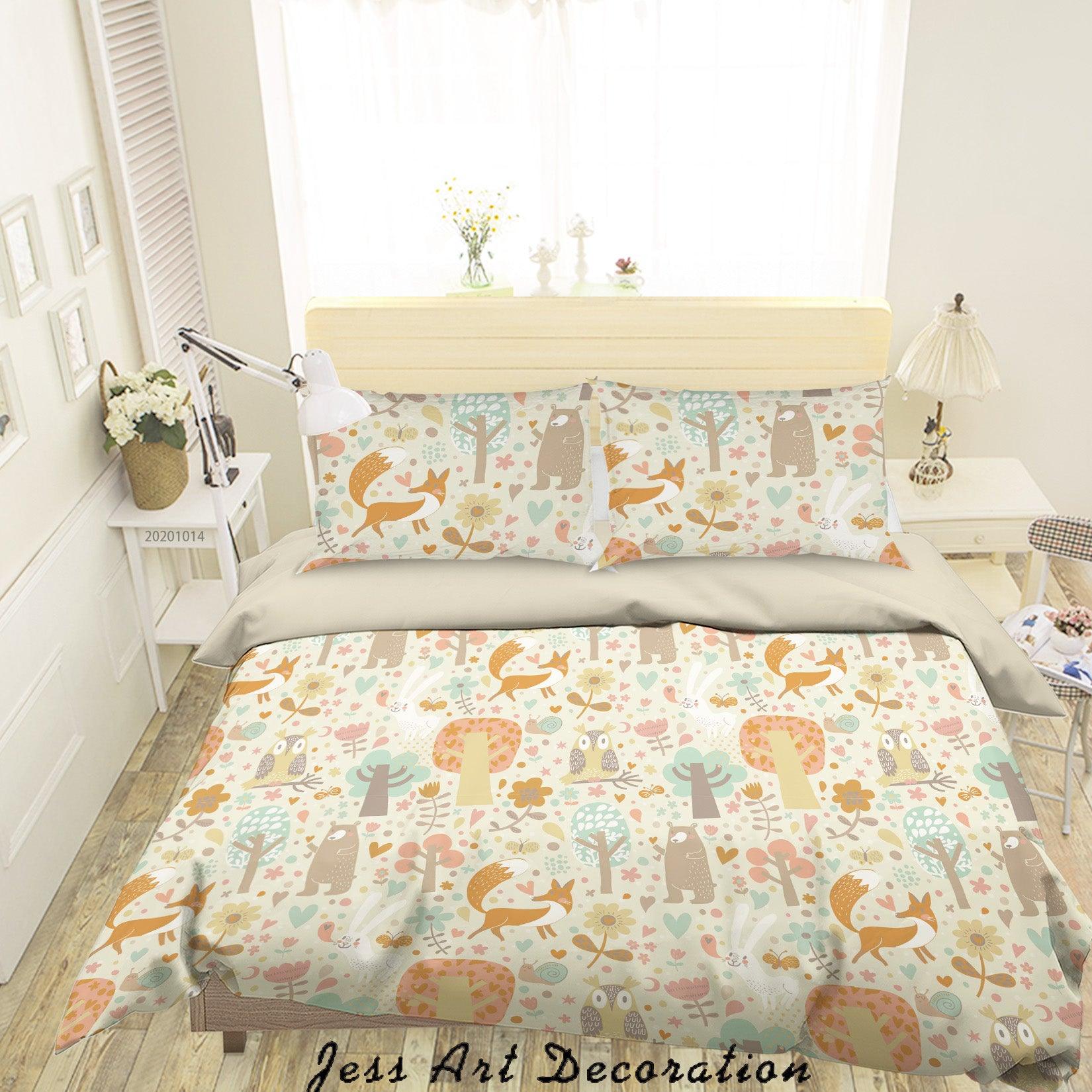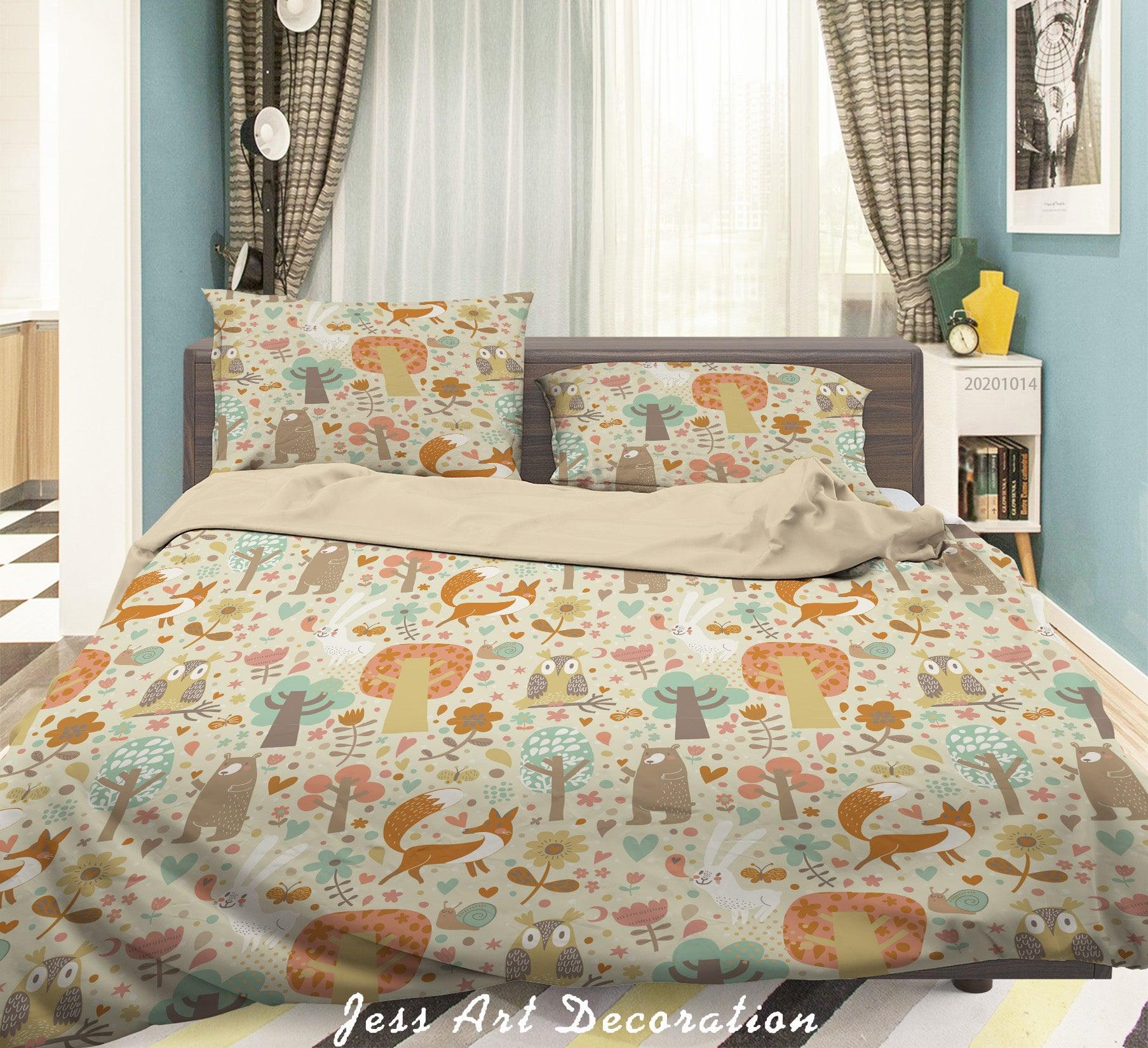 3D Cartoon Animal Leaves Owl Bear Pattern Quilt Cover Set Bedding Set Duvet Cover Pillowcases WJ 9706