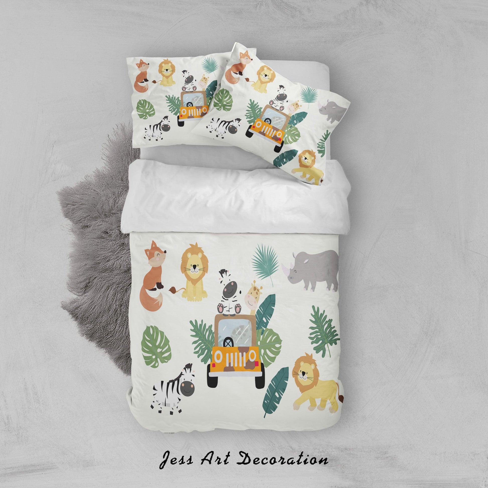3D Cartoon Animal Lion Fox Zebra Rhinoceros Car Leaves Quilt Cover Set Bedding Set Duvet Cover Pillowcases SF18