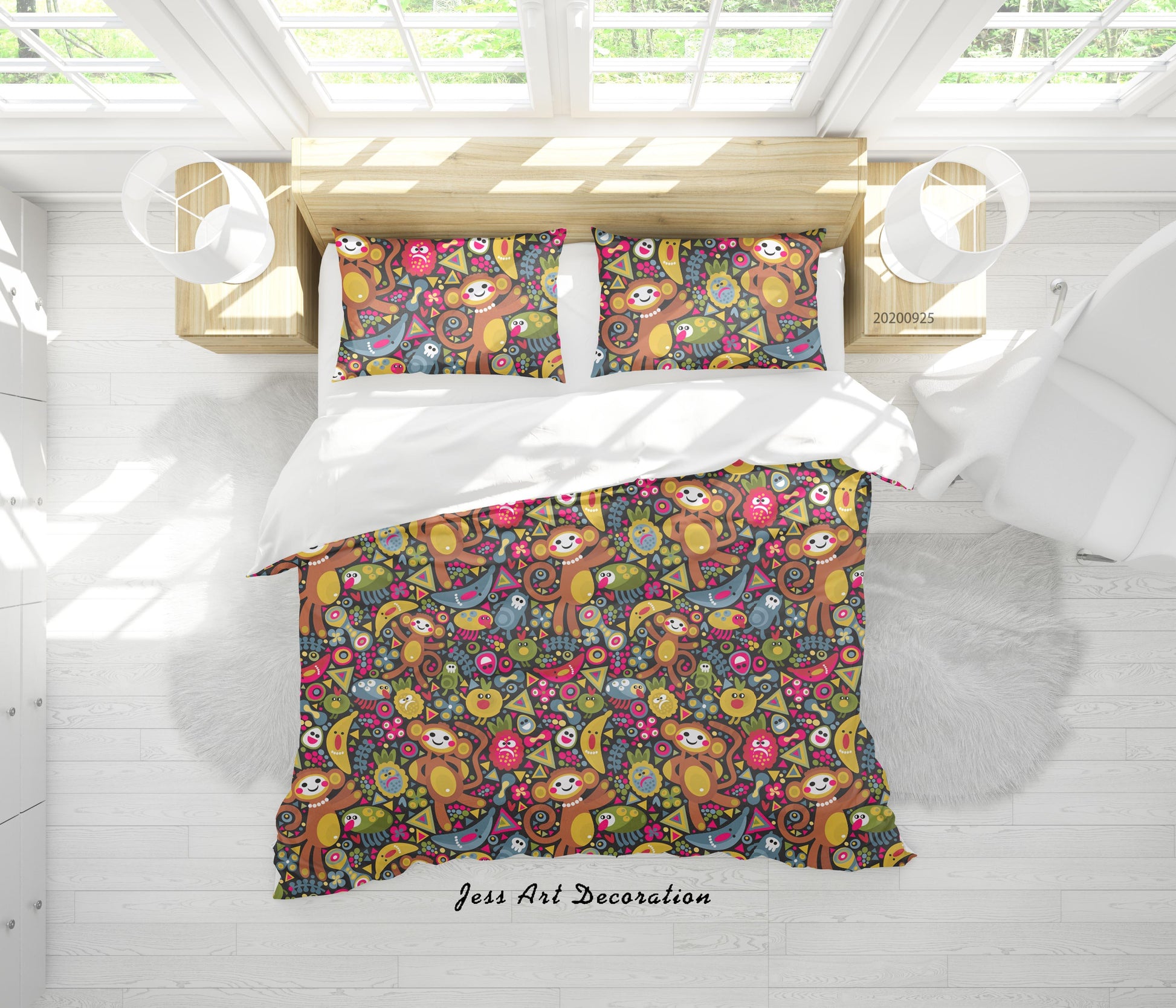 3D Cartoon Animal Monkey Banana Pattern Quilt Cover Set Bedding Set Duvet Cover Pillowcases WJ 6510