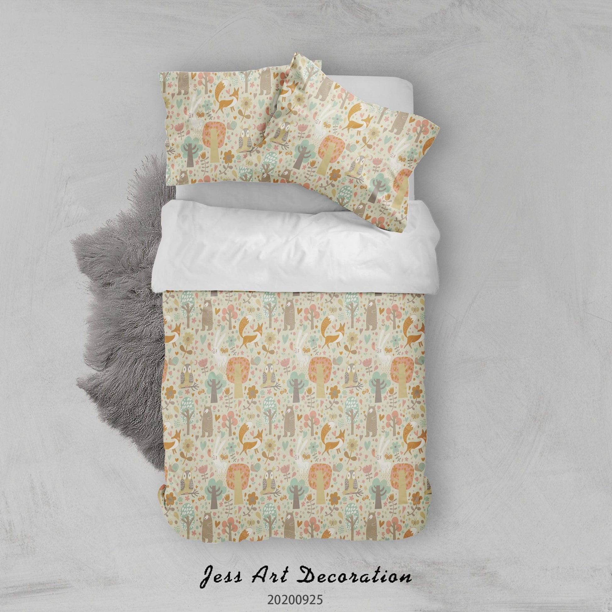 3D Cartoon Animal Owl Leaves Pattern Quilt Cover Set Bedding Set Duvet Cover Pillowcases WJ 6478