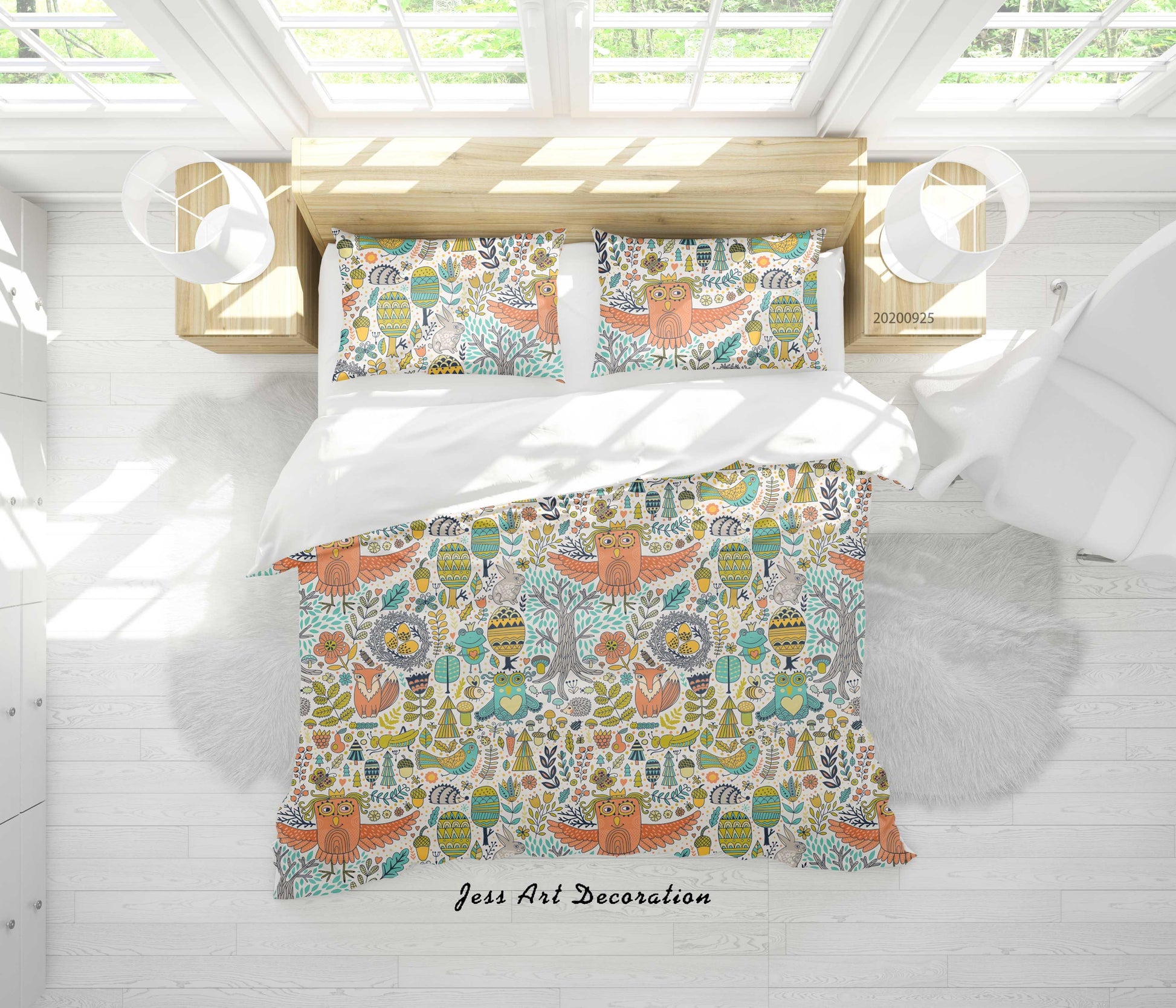 3D Cartoon Animal Owl Pattern Quilt Cover Set Bedding Set Duvet Cover Pillowcases WJ 6498