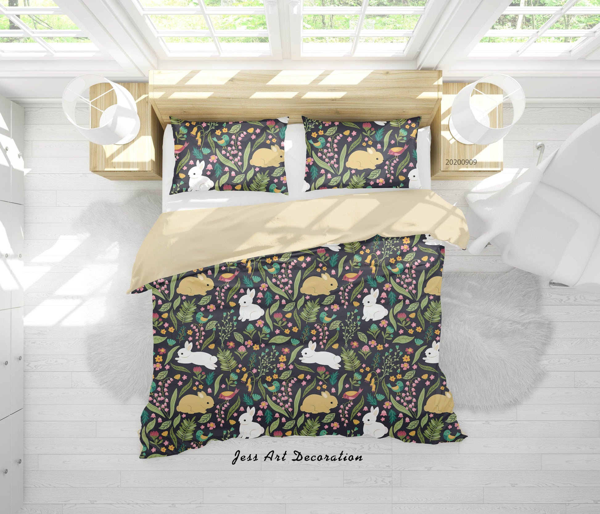 3D Cartoon Animal Rabbit Leaves Pattern Quilt Cover Set Bedding Set Duvet Cover Pillowcases WJ 6027