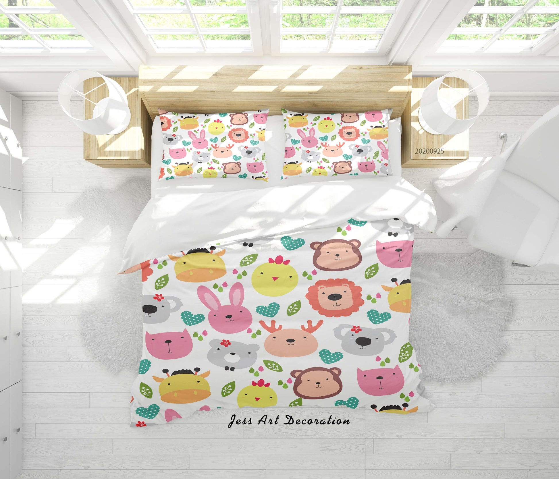 3D Cartoon Animal Rabbit Lion Monkey Pattern Quilt Cover Set Bedding Set Duvet Cover Pillowcases WJ 6499