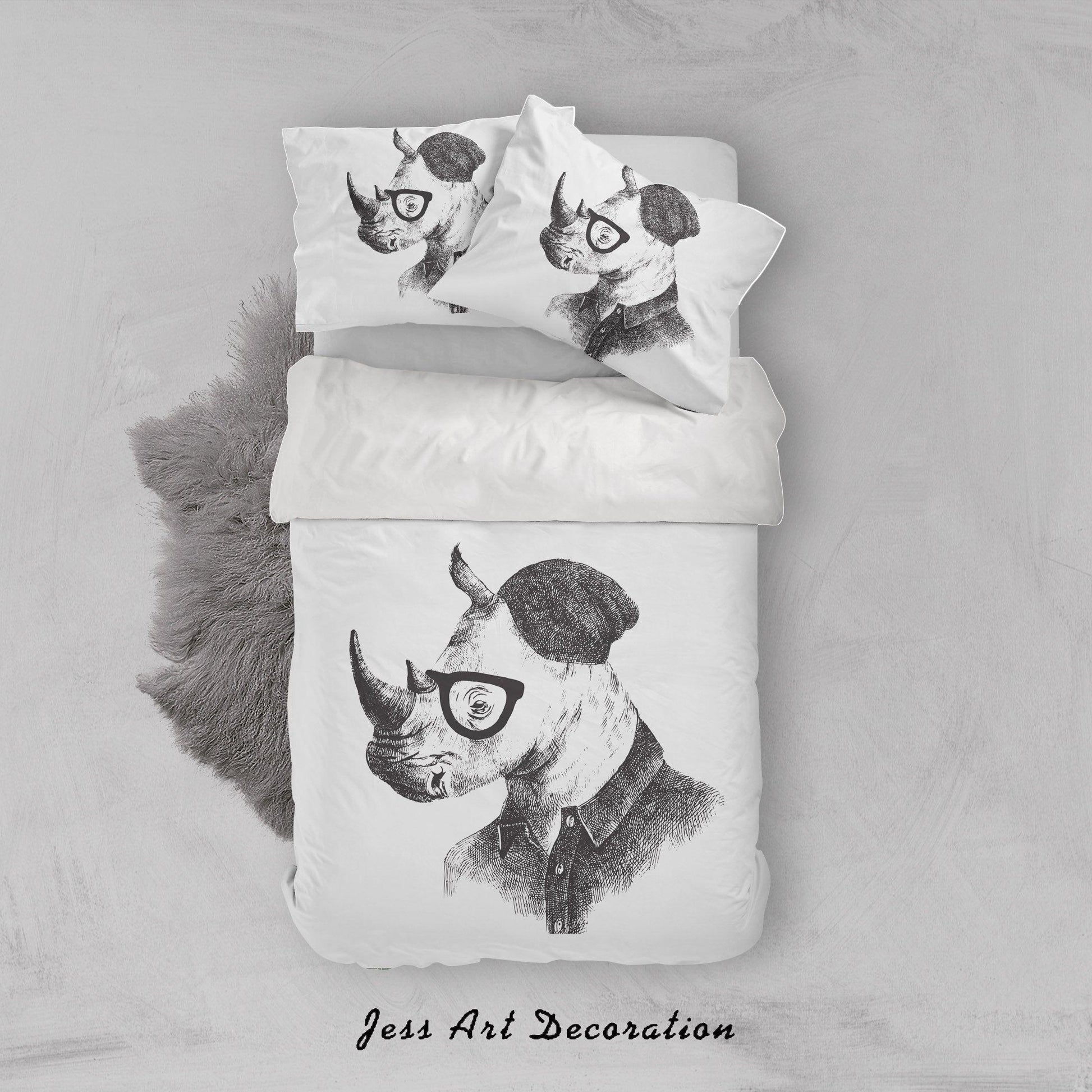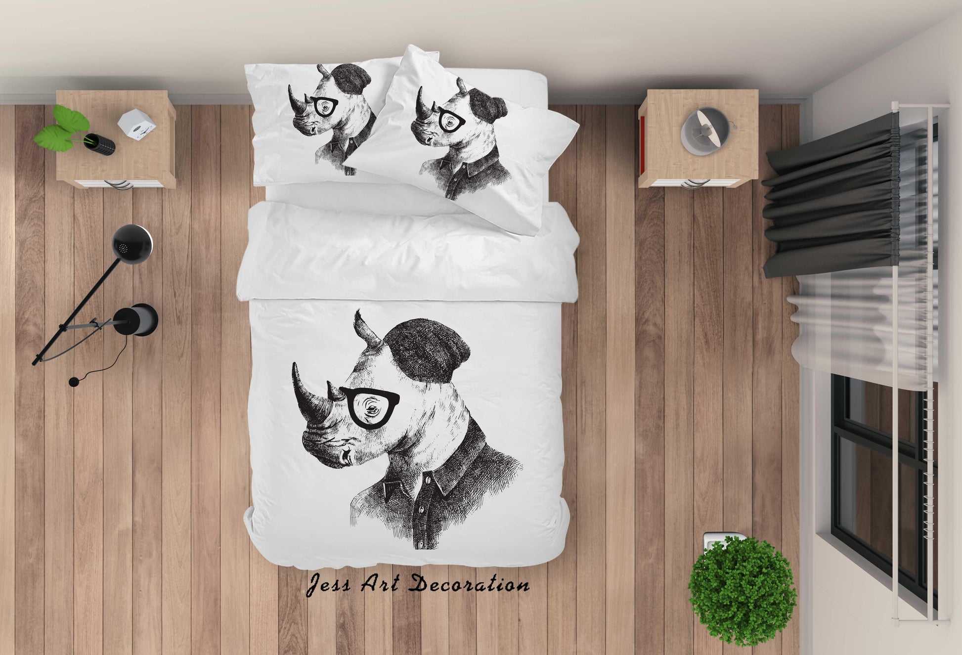 3D Cartoon Animal Rhinoceros Quilt Cover Set Bedding Set Duvet Cover Pillowcases A023 LQH