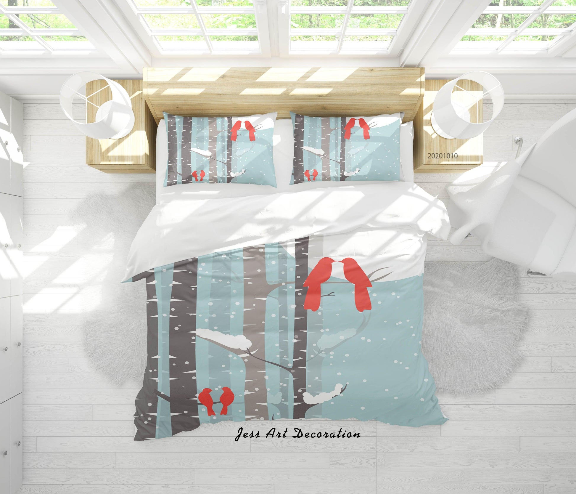 3D Cartoon Animal Winter Birds Couple Quilt Cover Set Bedding Set Duvet Cover Pillowcases WJ 9585